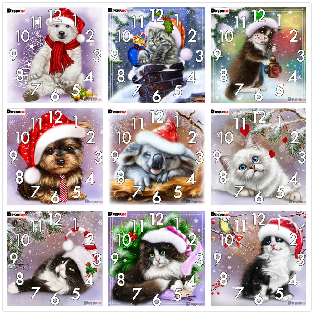 Полноформатная алмазная живопись Dpsprue, вышивка крестиком, рождественские подарки с собакой, мозаика с часовым механизмом, 5D сделай сам, квадратная, круглая, 3d вышивка, подарок