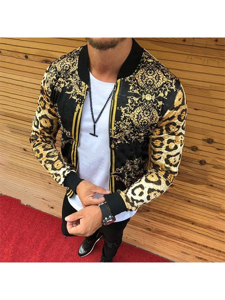 Новинка 2022, весенне-осенняя мужская приталенная куртка с леопардовым принтом и круглым вырезом в европейском и американском стиле, повседневная куртка