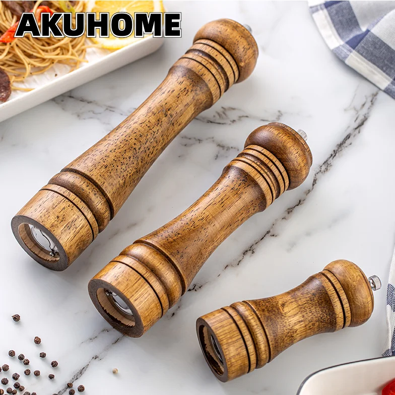Классическая Ручная мельница для соли и перца из дубовой древесины,...