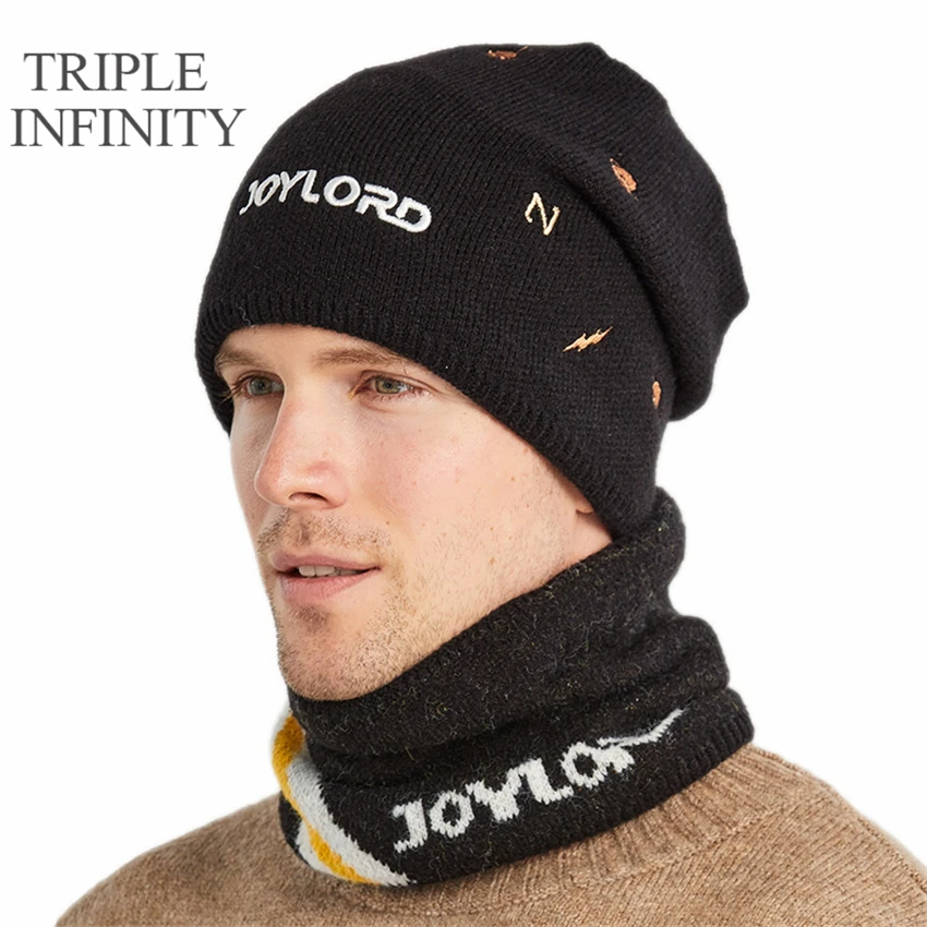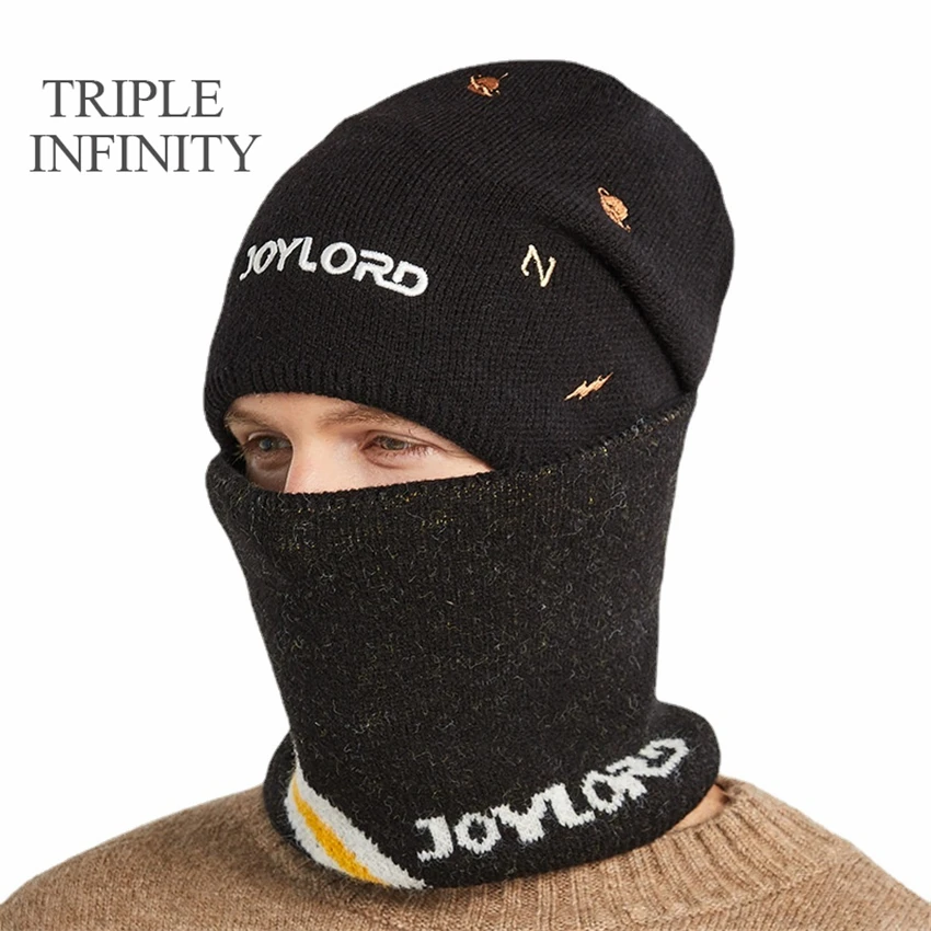 Зимняя мужская шапка с тройным знаком бесконечности, теплый костюм, велосипедные лыжные Лыжные шапки, закрывающие половину лица, непромокаемые Пушистые вязаные шапки, шапочки, облегающие шапки, мужская шапка