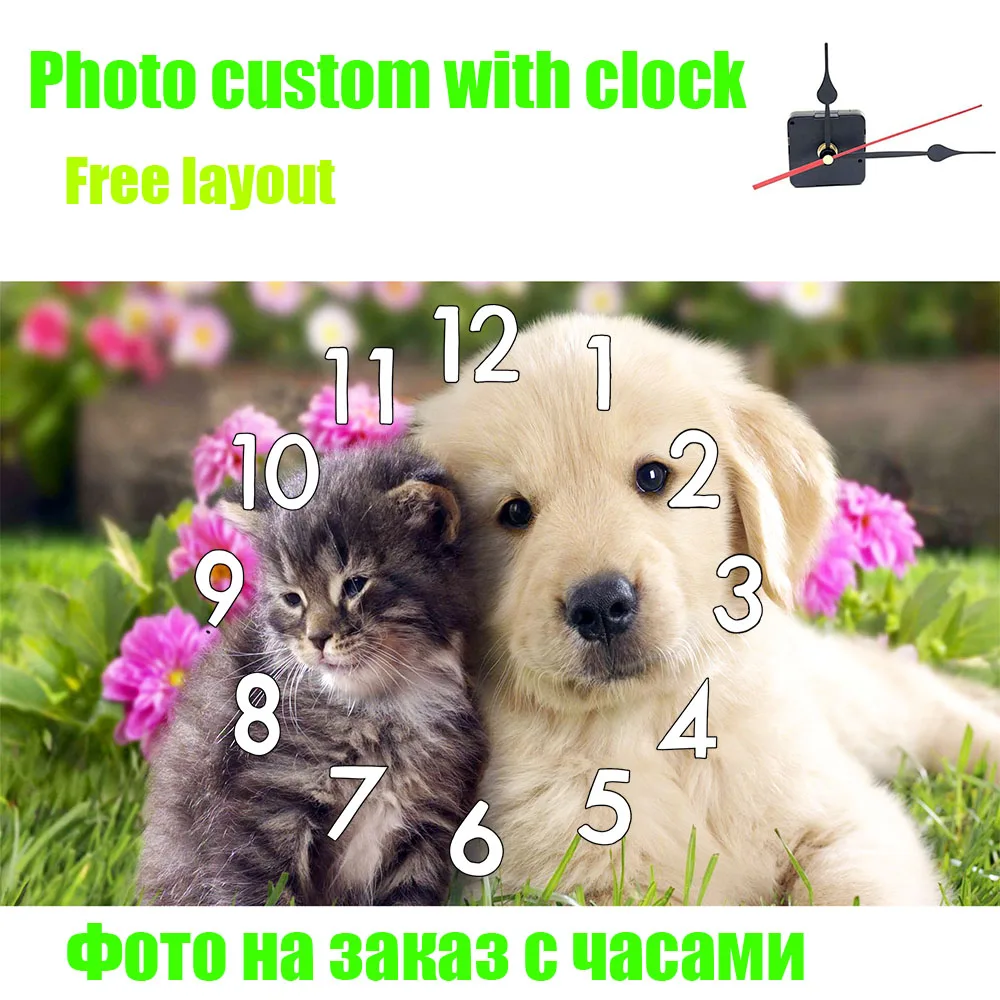 Набор для алмазной вышивки часы и механизм, картина крестиком, мозаика 5D квадратнойкруглой формы, индивидуальный заказ