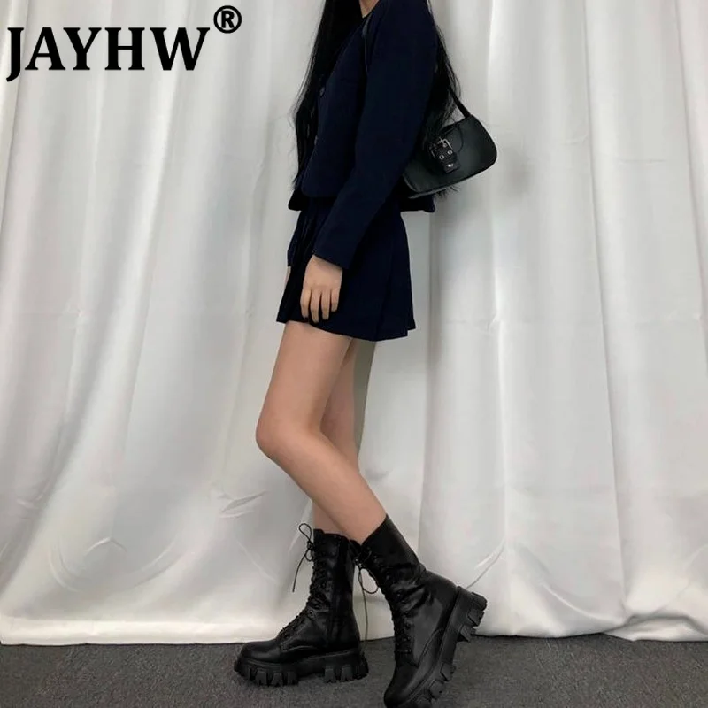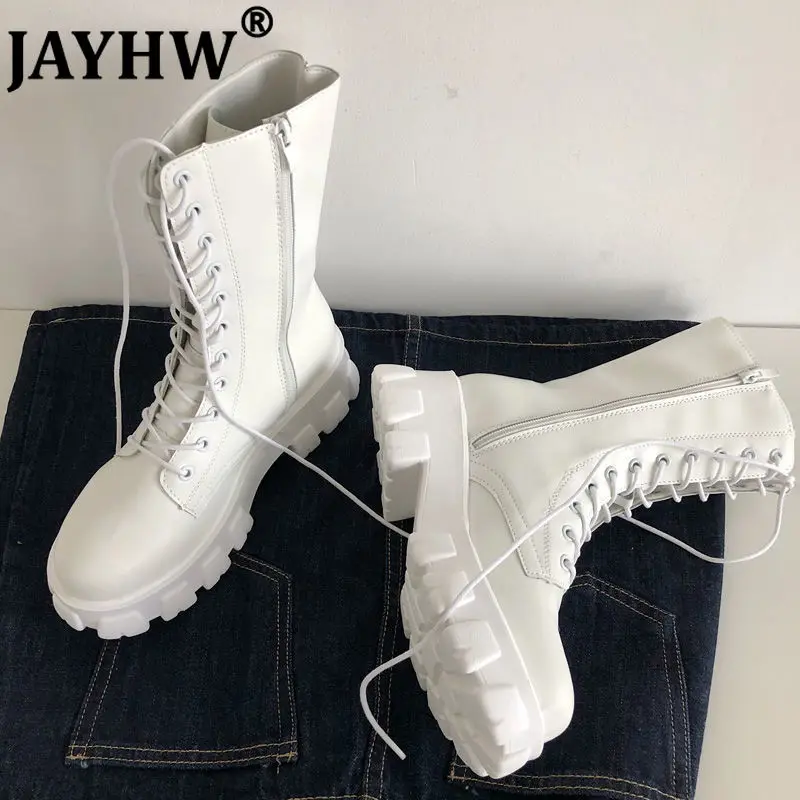 JAYHW осенне-зимние новые женские сапоги до середины икры, модные женские сапоги на шнуровке и молнии, женские спортивные сапоги на платформе, женская обувь