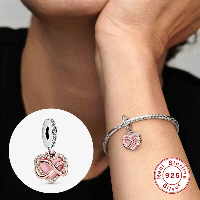 Женский браслет из серебра 925 пробы, с подвеской в виде РОЗОВОГО СЕРДЦА