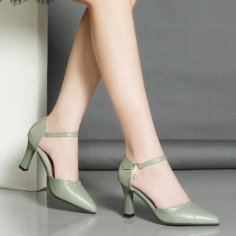 Туфли-лодочки женские из ПУ кожи, ажурные, на квадратном каблуке, с пряжкой, бежевые, E9305, весна-лето