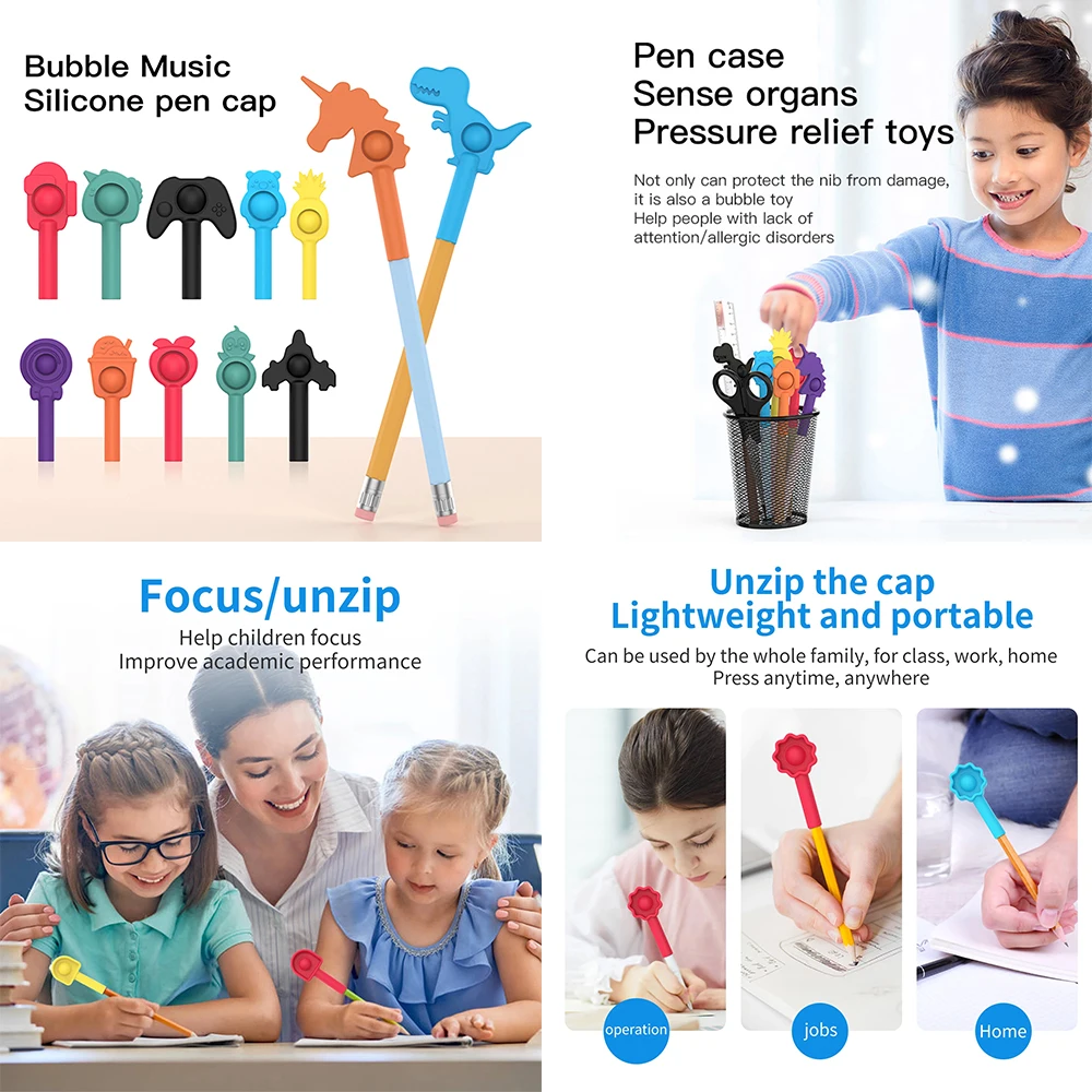Новинка фиджет-попет чехол карандаш кавайная Игрушка антистресс симпатичная Мерцающая игрушка для детей Монтессори анти-стресс ручка Шапочка игрушки Бесплатная доставка