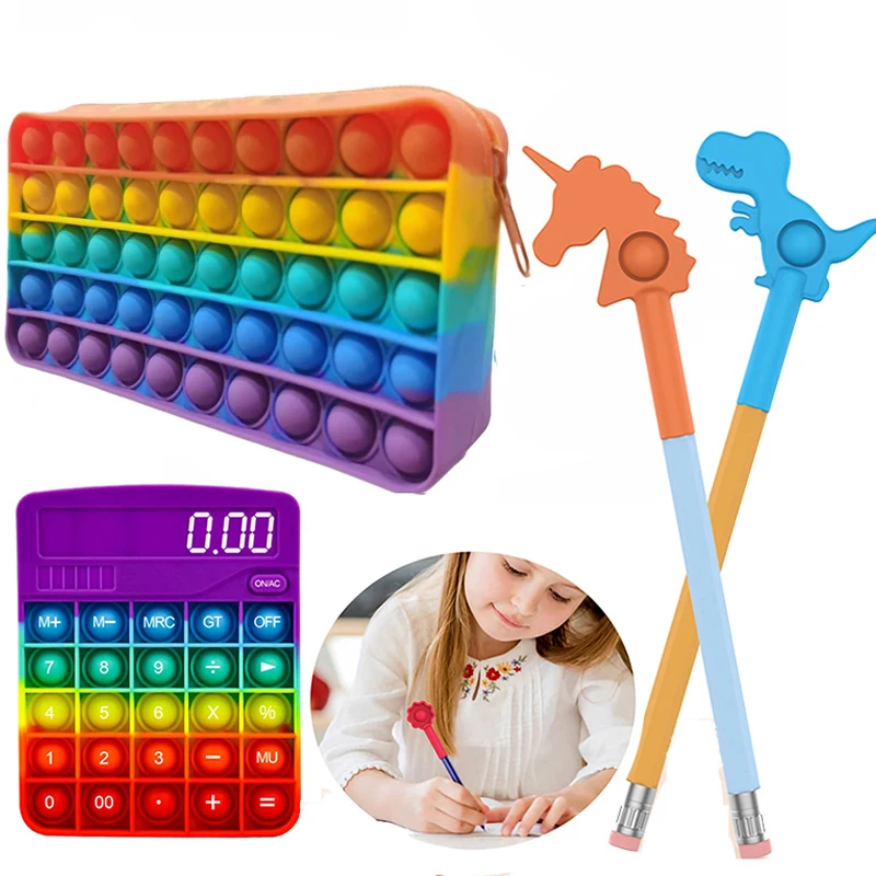 2в1 новый большой чехол-карандаш Popete Pops Fidget Toys Push Bubble, детский антистресс, набор для сжимания игрушек, поп-ручка-калькулятор, кепка, чехол-карандаш, игрушки для детей
