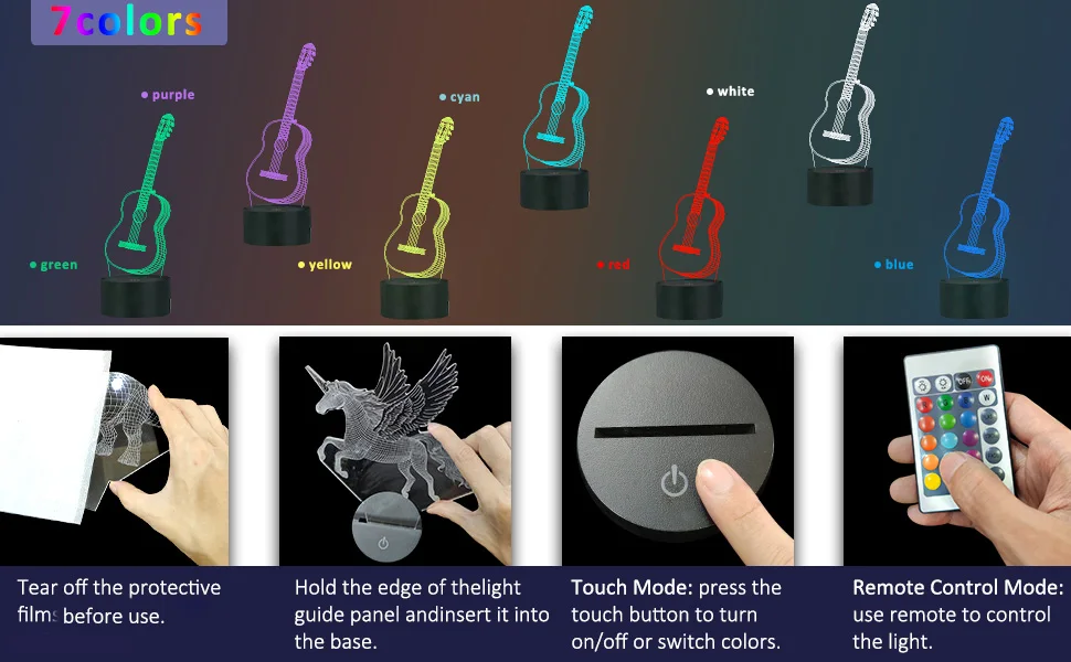 Музыкальный инструмент для смены гитары, 16 цветов, 3D ночсветильник, USB пульт дистанционного управления и сенсорсветодиодный светодиодная иллюзионная лампа для меломана, домашний декор для вечеринки