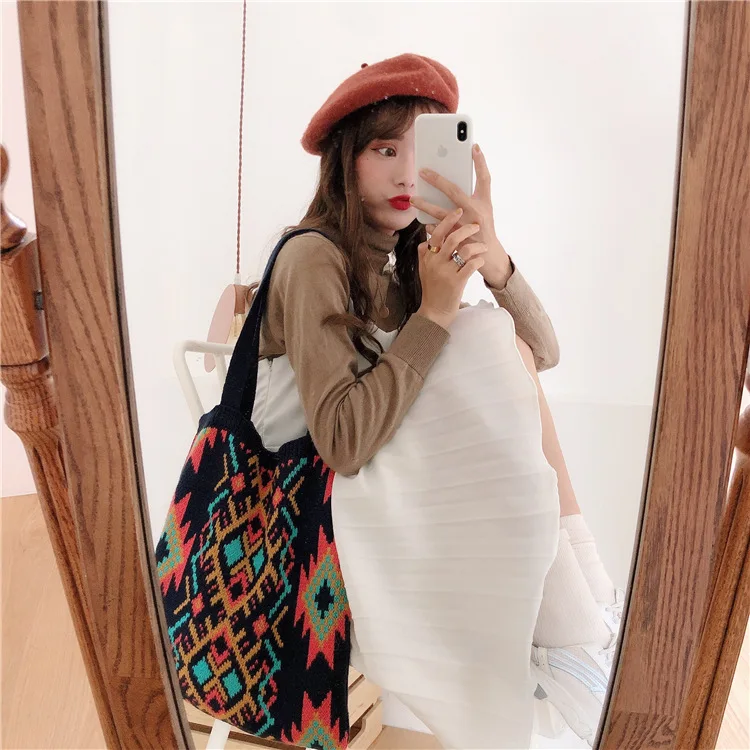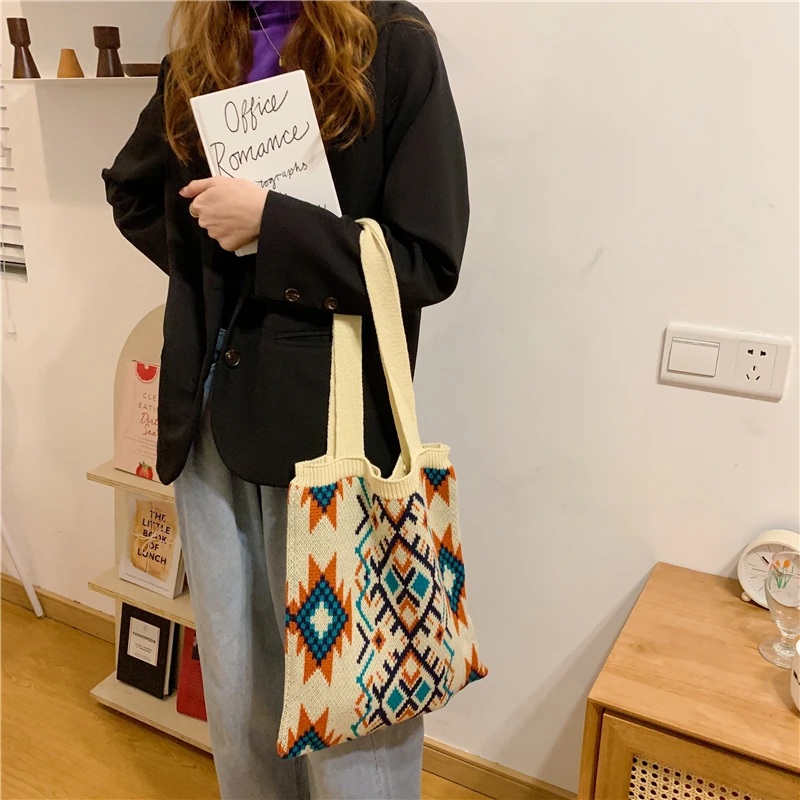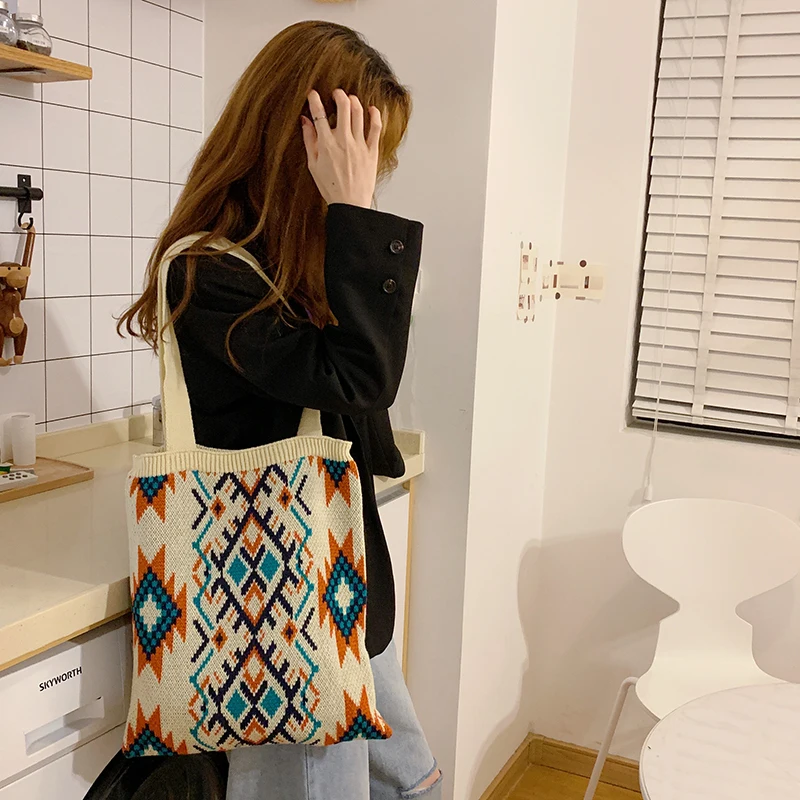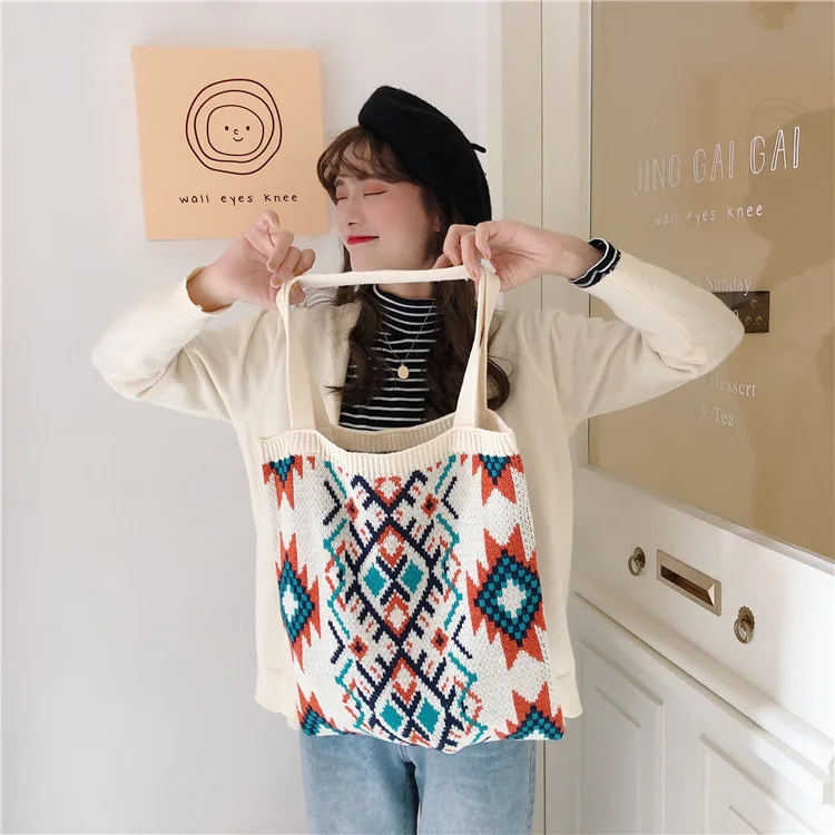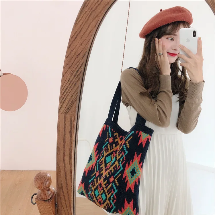 Классическая парусиновая сумка для девочек, шерстяная вязаная сумка...