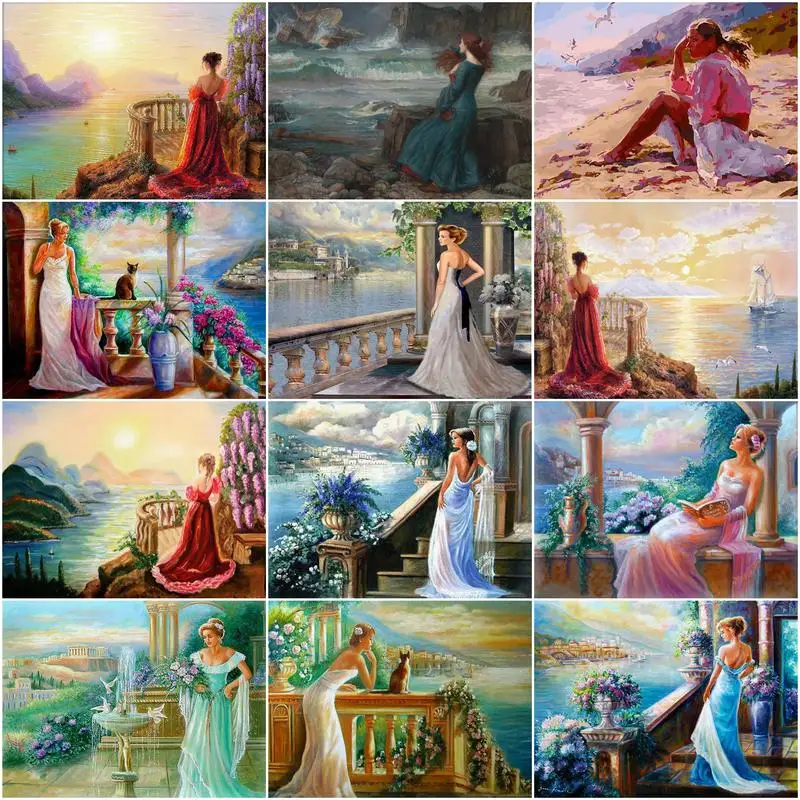 CHENISTORY изображения по номерам Морской берег Женский комплект для взрослых ручная роспись DIY рамка рисунок на холсте Цветы украшение для дома подарок
