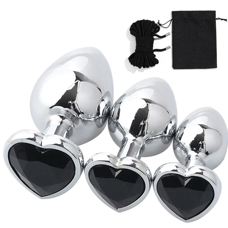 Анальная пробка в форме сердца, 3 размера, 10 м, веревка, анальная пробка с кристаллами из нержавеющей стали, съемный набор анальных секс-игрушек анальный стимулятор-пробка