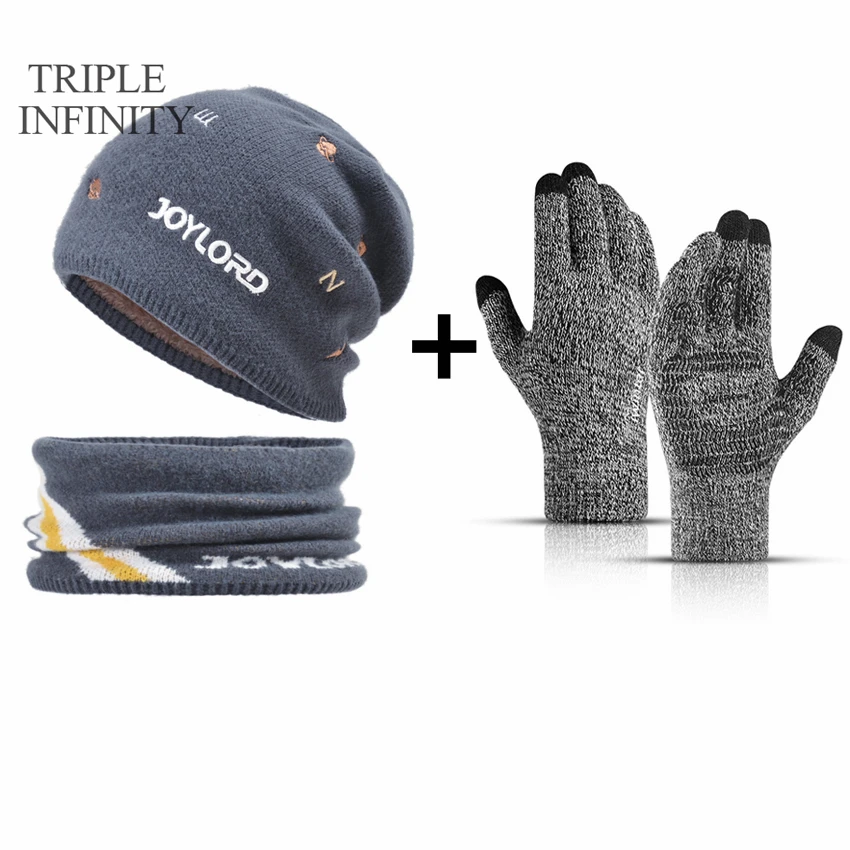 Зимняя мужская шапка с тройным знаком бесконечности, теплый костюм,...