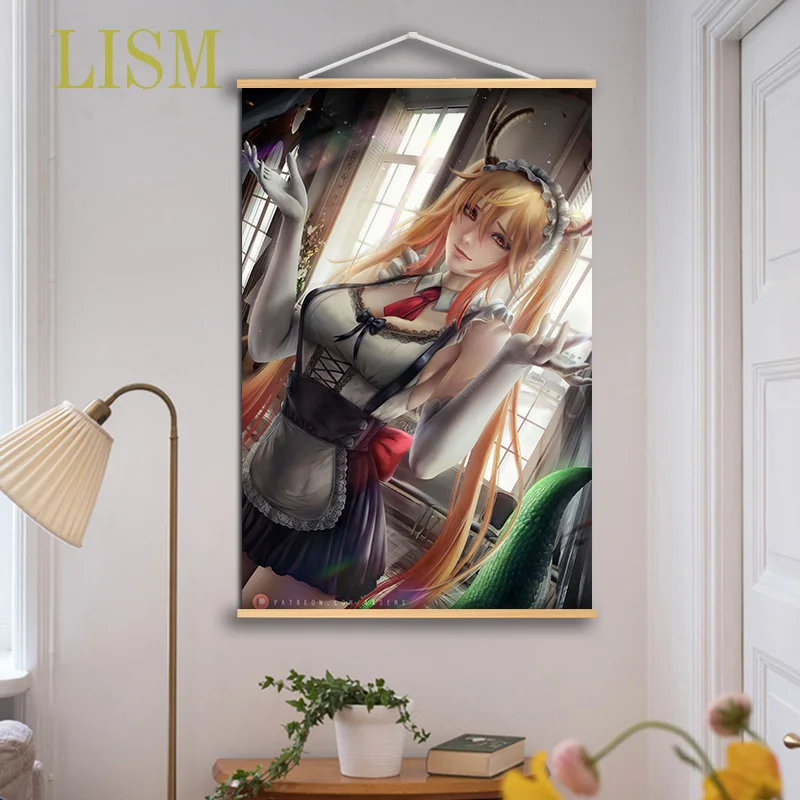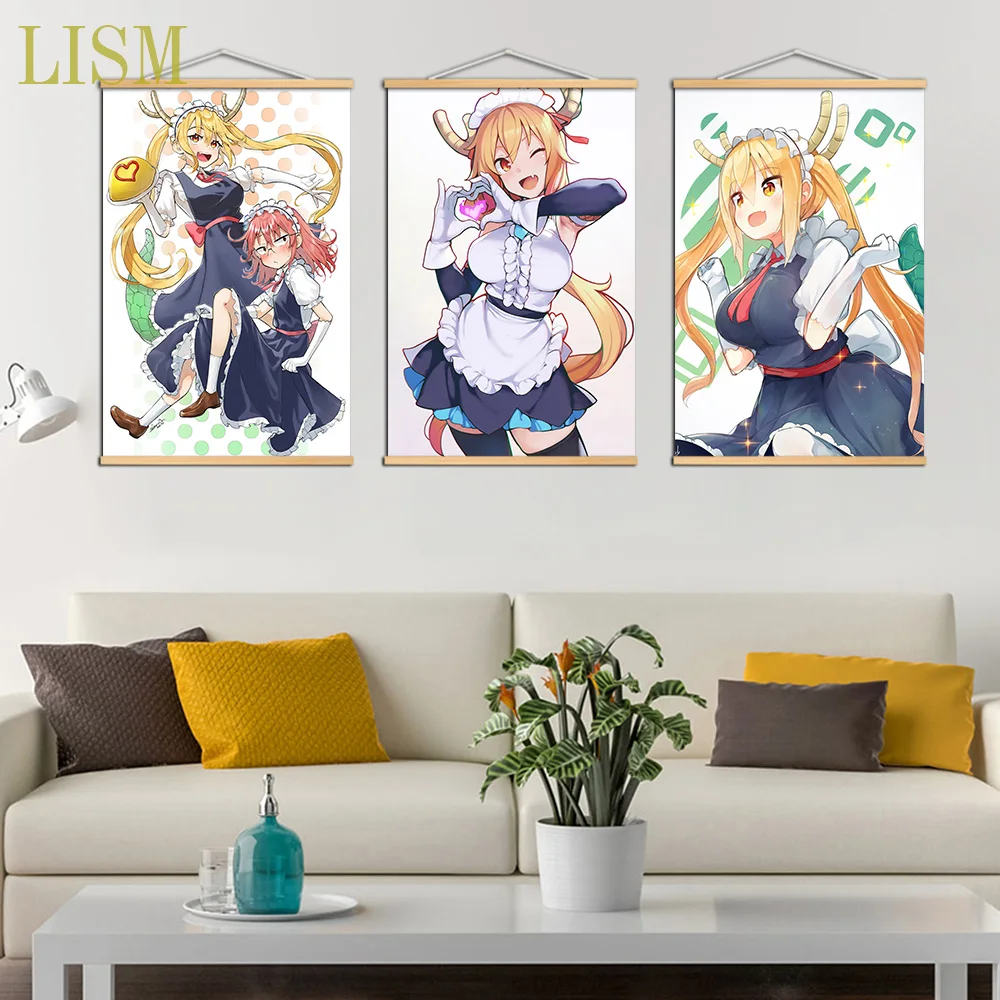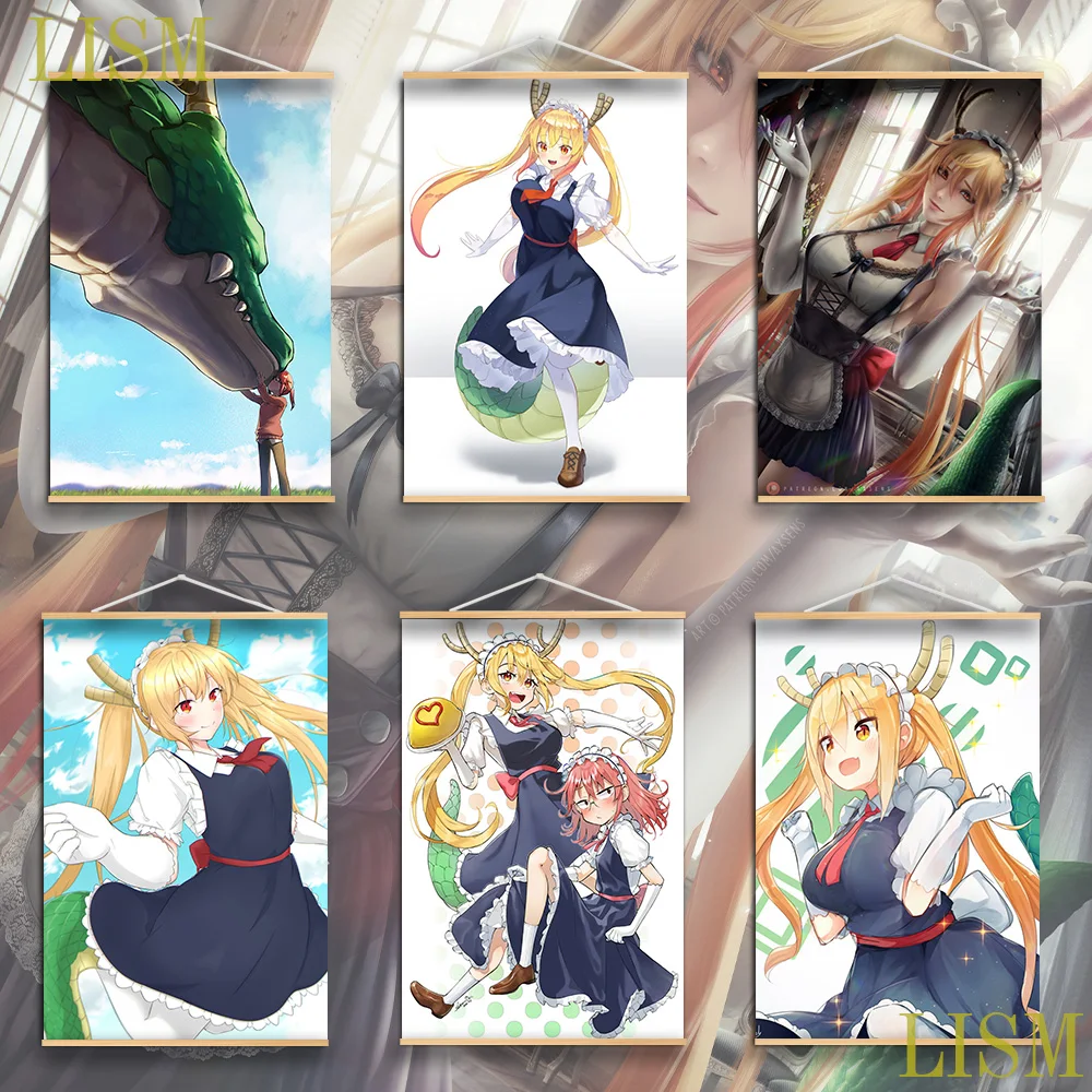 Мисс Кобаяси Дракон горничная Тору Аниме Манга настенный постер холст живопись твердый деревянный виток