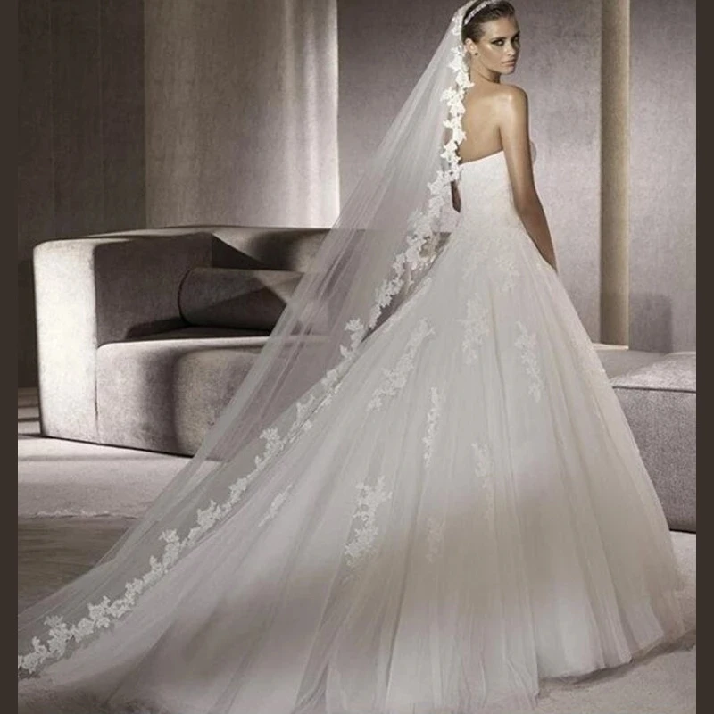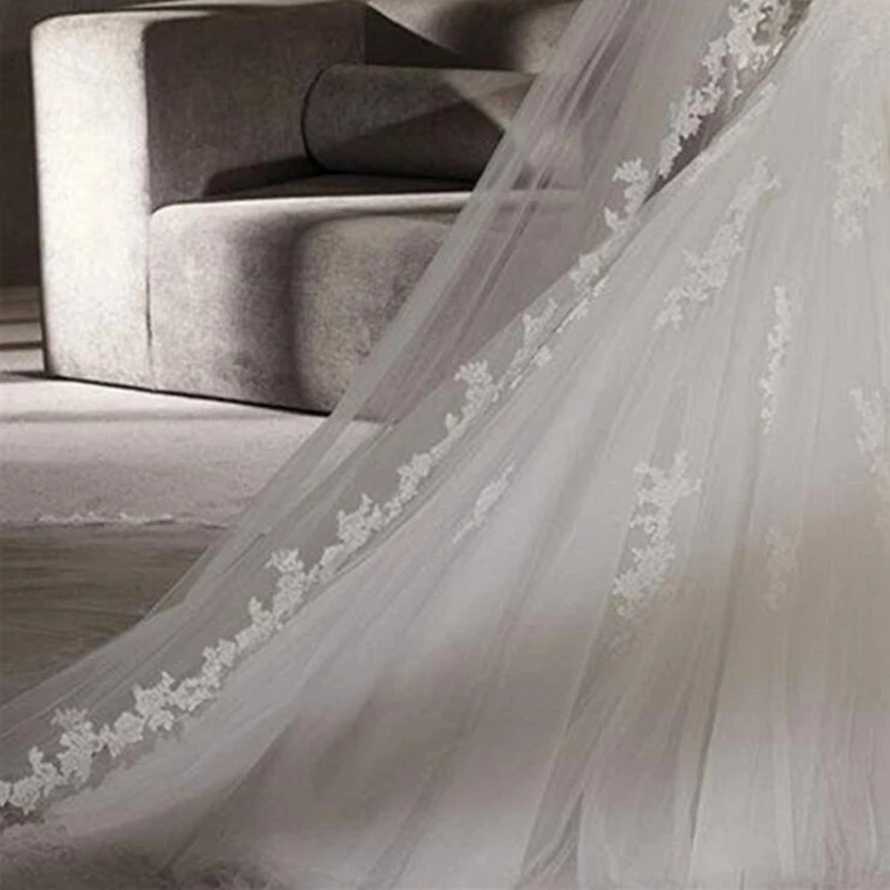 Фата свадебная с кружевными краями, цвет слоновой кости, свадебные аксессуары, 3 м
