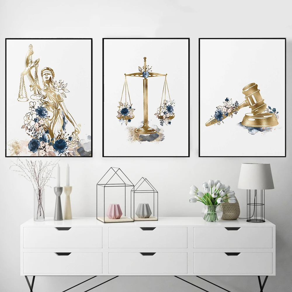 Патентный плакат с золотым цветком для юстиции, настенная живопись ...