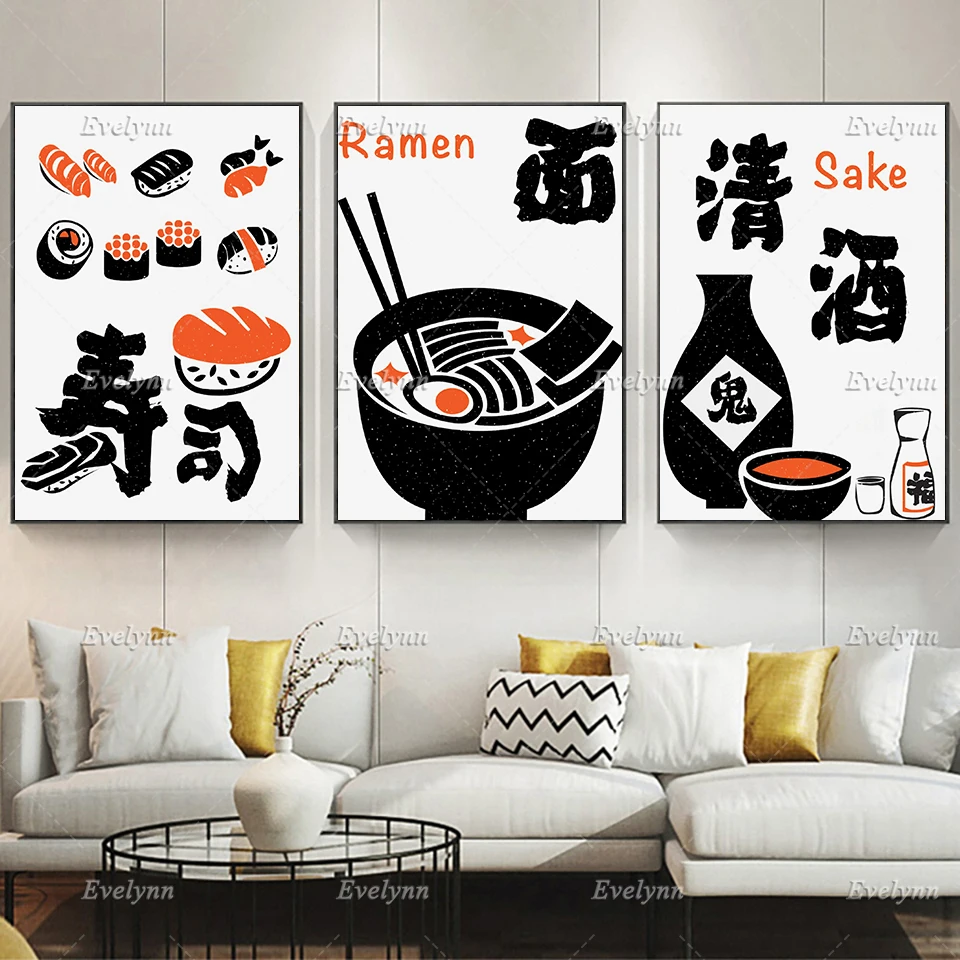 Современные декоративные постеры для кухни, суши сашими, японское искусство, Лапша Рамен, Пончик, ретро Коктейльные рыбы фрукты на холсте настенные художественные принты