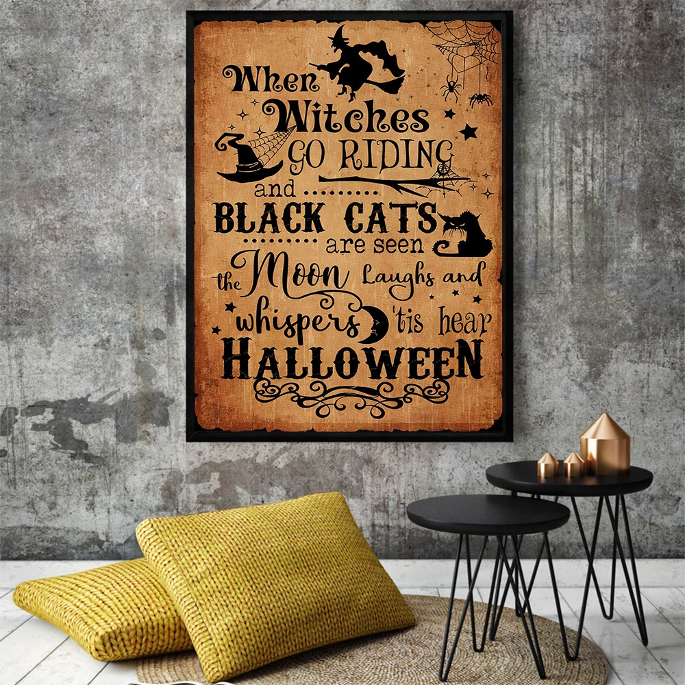 Постер на Хэллоуин Когда ведьмы идут на езду и черные кошки, забавное настенное искусство, подарки, Картина на холсте, домашний декор без рамки