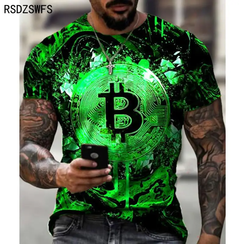 Модная футболка с 3D-принтом биткоина для мужчин, летняя уличная одежда, повседневные свободные топы с круглым вырезом и коротким рукавом