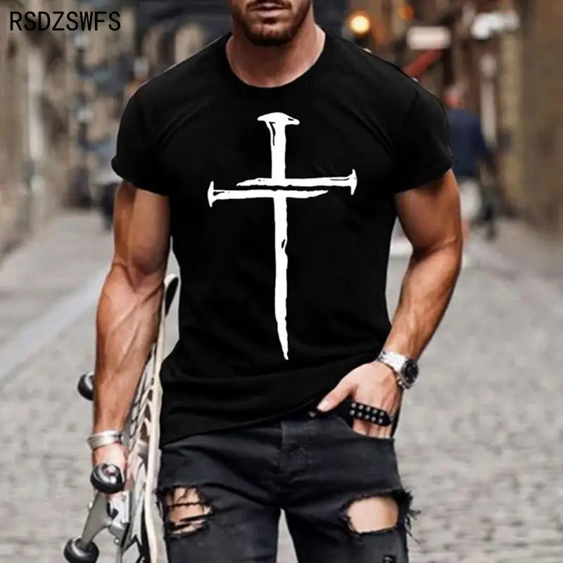Модная мужская футболка с 3D-принтом Иисуса Христа, летняя повседневная Универсальная футболка оверсайз с круглым вырезом и короткими рукавами, уличная одежда, топы