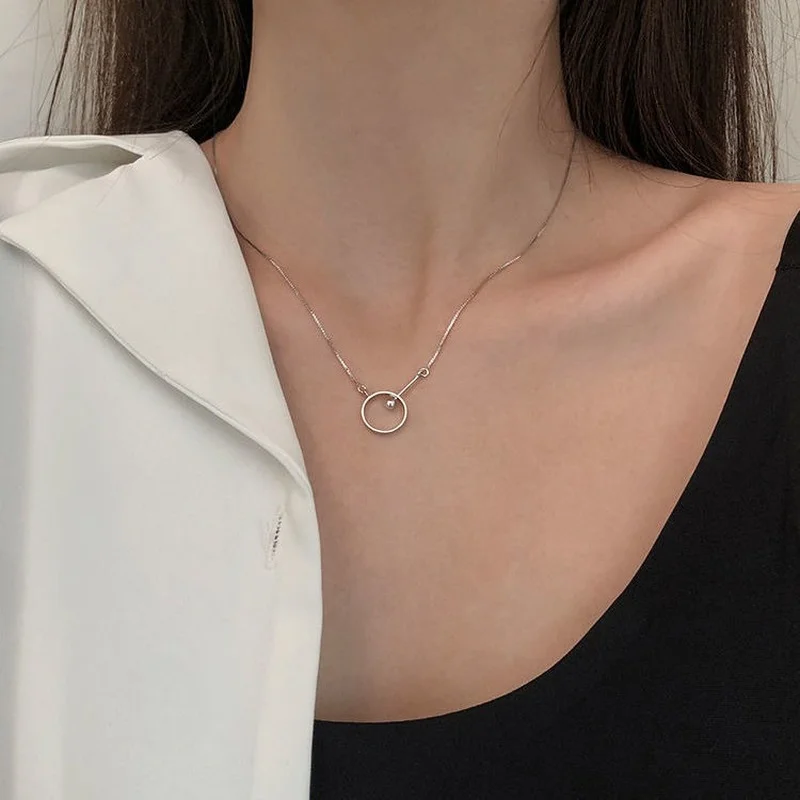 VOQ 925 пробы Серебряное геометрическое круглое ожерелье, Женская цепочка до ключиц, Простые индивидуальные украшения