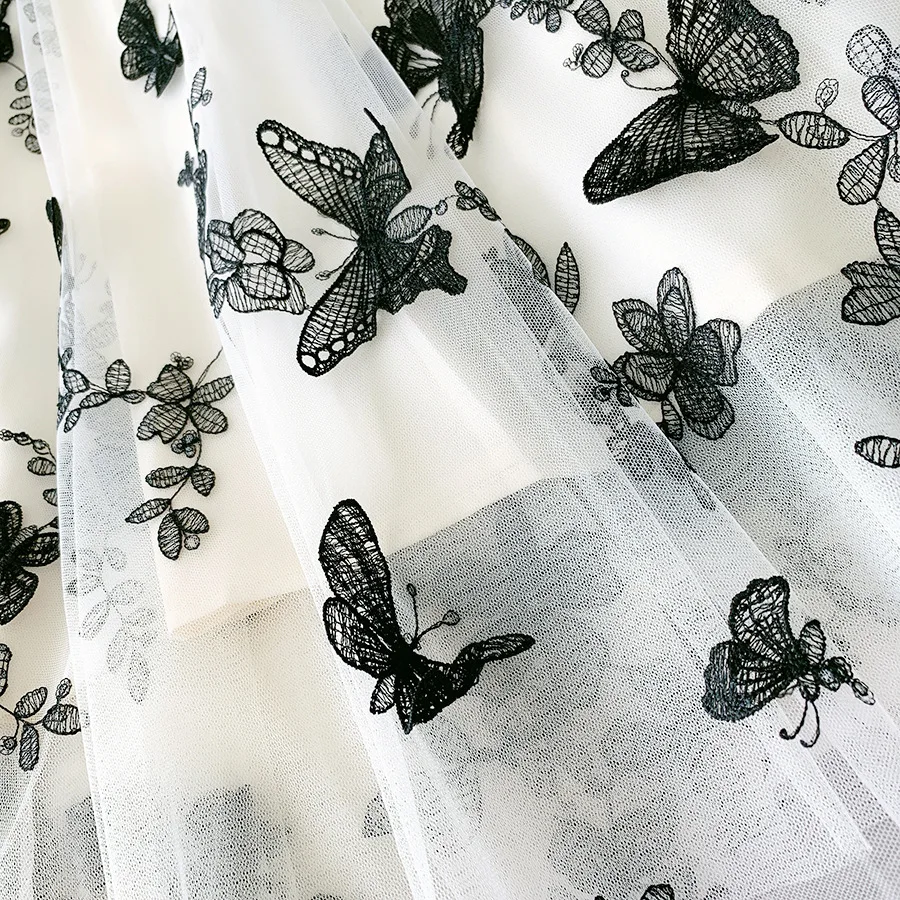 Женская длинная юбка средней длины, юбка-пачка трапециевидной формы из сетчатой ткани, юбка с вышивкой на осень и зиму