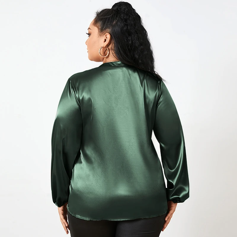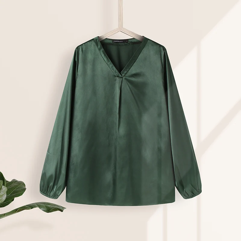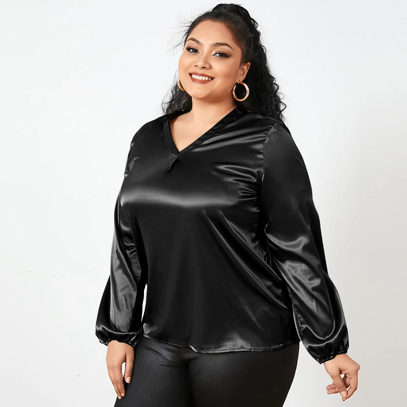 Женская атласная блузка с V-образным вырезом, с длинным рукавом