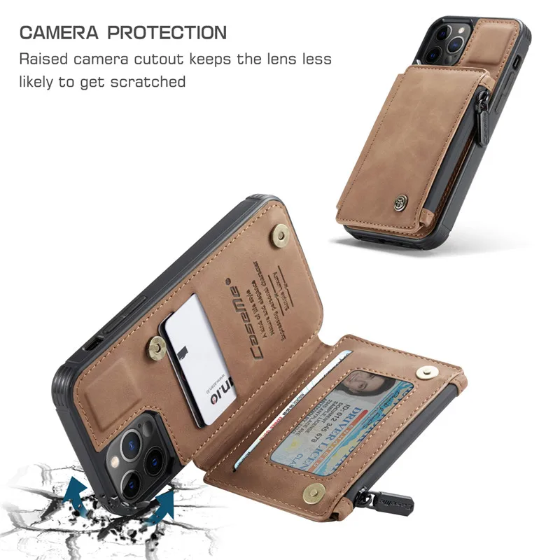 Кожаный чехол-бумажник для iPhone 13, 12, 11 Pro Max, X, XS, XR, SE 2020, 8, 7 Plus, кошелек на молнии, флип-чехол с подставкой, чехлы, Coque