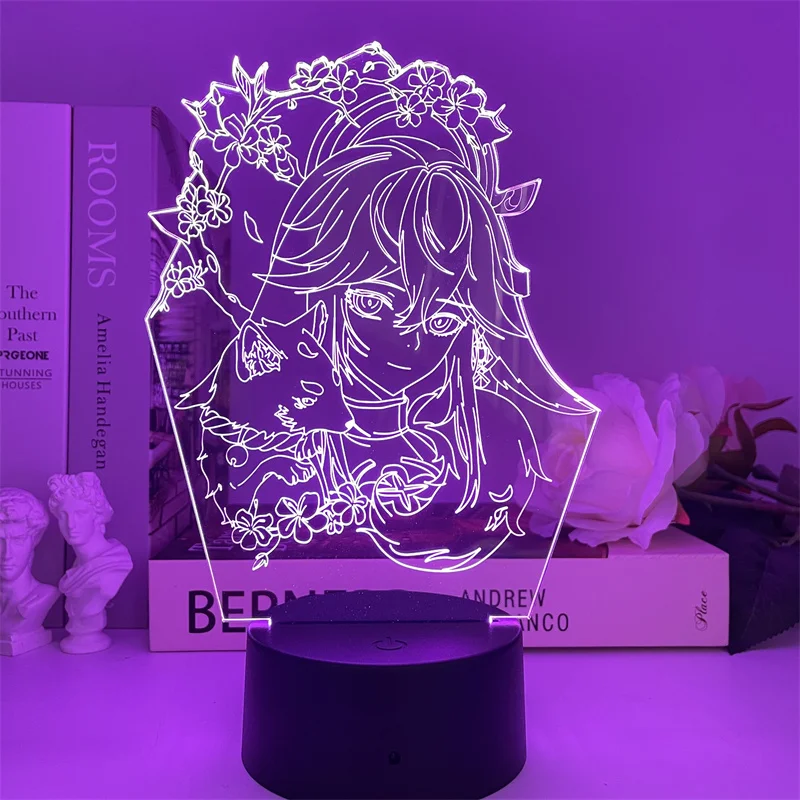 Ночной светильник Genshin Impact Yae Miko 3D Guuji Yae вокруг игры для детской спальни Декор подарок на день рождения светодиодный светильник Guuji 7 цветов
