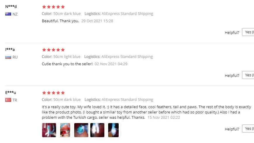 Это действительно милая игрушка. Моей жене понравилось. :) С детальным лицом, крутыми перьями, хвостом и лапами. Остальная часть тела точно такая же, как на фото товара. (Я купил похожую игрушку у другого продавца до этого, у которого было такое плохое качество.) Также у меня была проблема с турецким грузом, продавец был полезен. Спасибо.