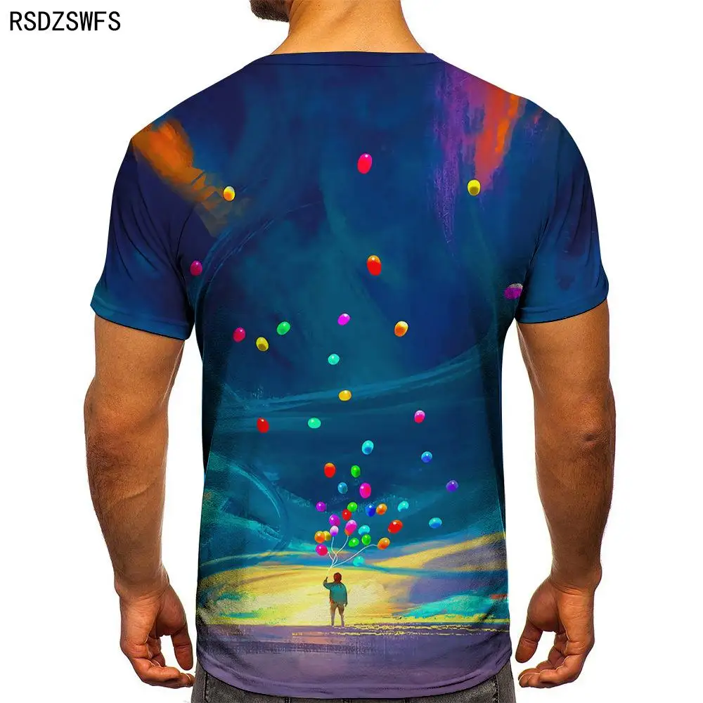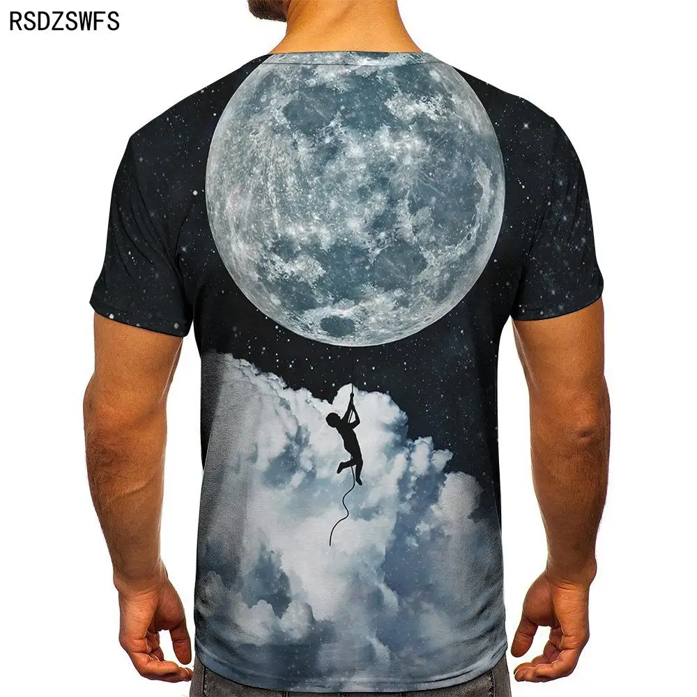 Футболка мужская с 3D-принтом, модная Повседневная рубашка с короткими рукавами, с рисунком звездного неба, земли, артистичное воображение, лето