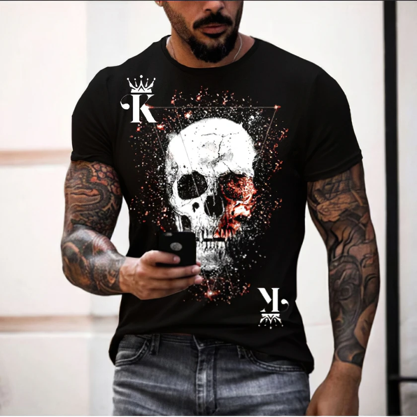 Футболка мужская с 3d-рисунком черепа, ужасная Модная рубашка с кру...