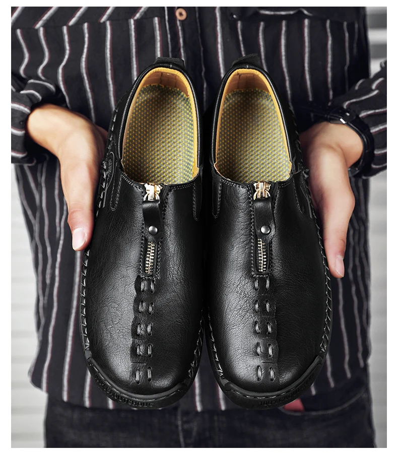 Мужские кожаные кроссовки ручной работы, мягкие повседневные лоферы...
