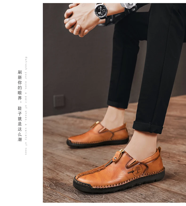 Новинка, кожаная модная мужская обувь, удобные нескользящие мужские...