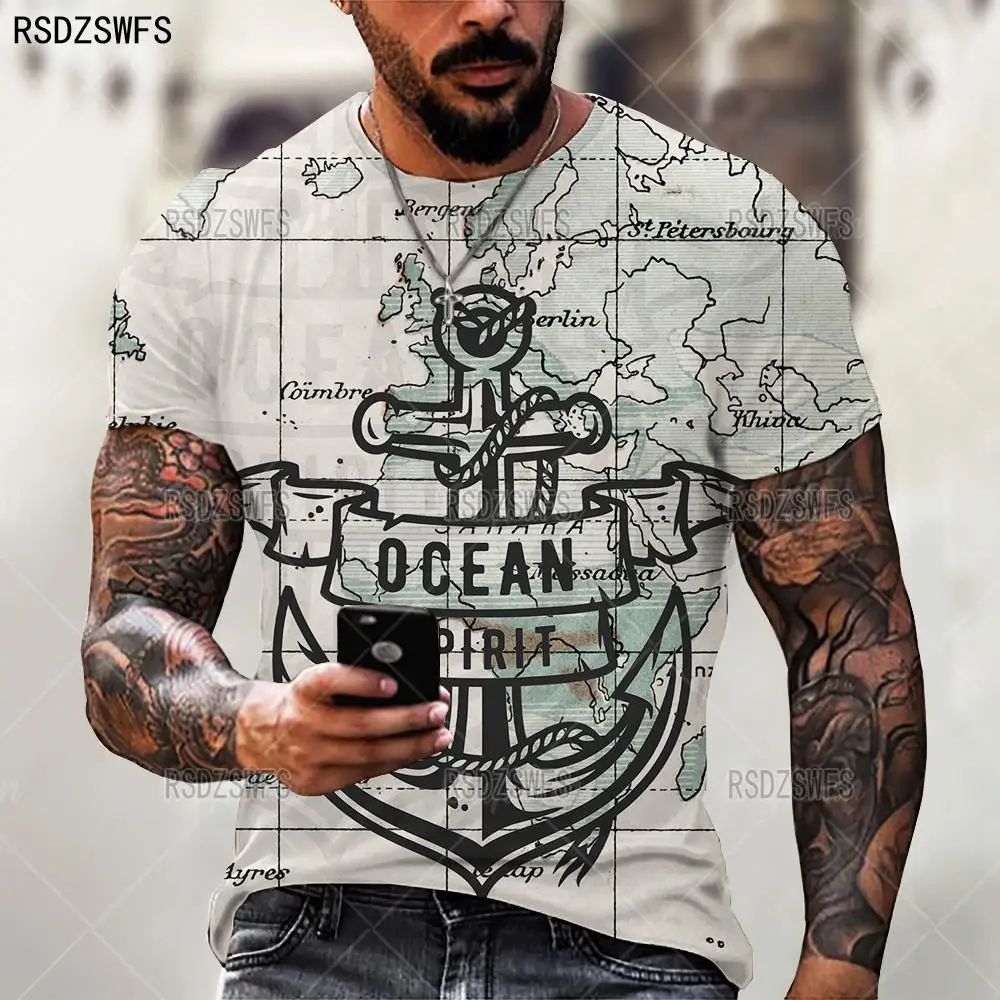 Футболка мужская оверсайз с 3D-принтом якоря, модная Повседневная р...