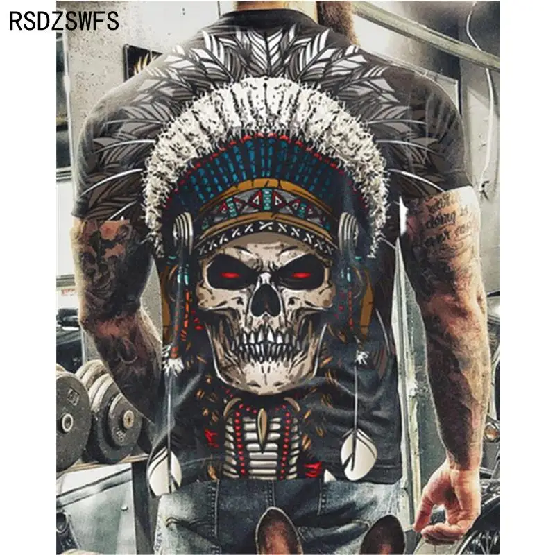 Футболка мужская с 3D-принтом черепа, модная повседневная одежда оверсайз с круглым вырезом и короткими рукавами, уличная одежда в стиле хип-хоп, лето