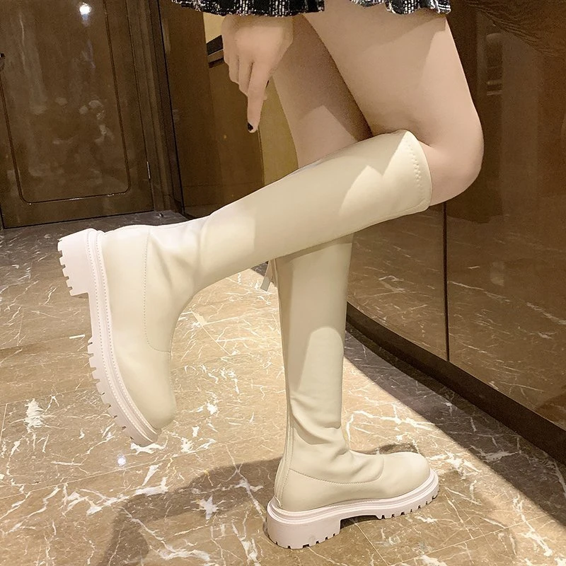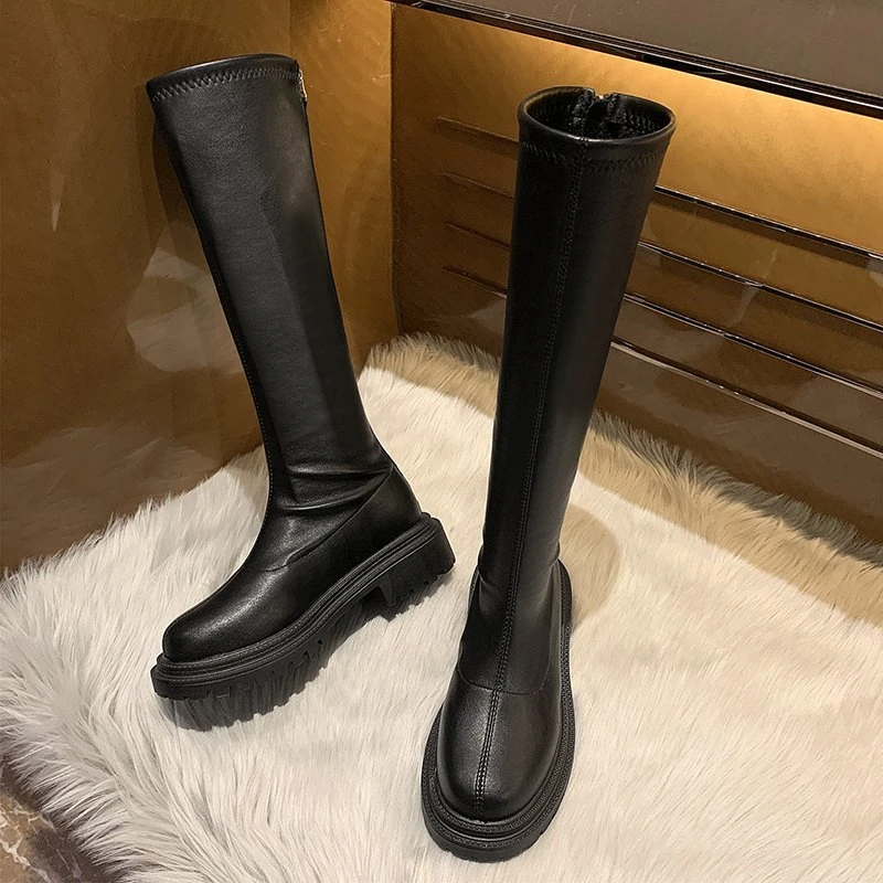 Новинка 2022, зимние стильные флисовые сапоги, сапоги до колена на массивном каблуке, женские сапоги на высоком каблуке, узкие сапоги на высоком каблуке