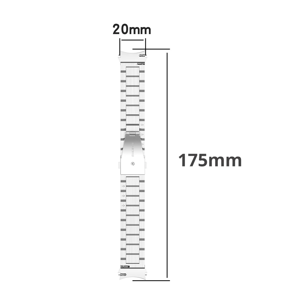 20 мм Нет зазоров, ремешки для часов для Samsung Galaxy Watch 4 40/44 мм/Galaxy часы 4 классических 42/46 мм replcasement металла ленточной изогнутый конец. Особенности: 1. Дизайн: ремешок для часов модный, благородный и прочный. Подходит для работы в офисе и занятий спортом. Этот дизайн сделает ваш ремешок часов более прочным и красивым. 2. Удобство: специально разработанный изогнутый соединитель, легко устанавливается и снимается, его легко оторвать, так что вы можете снимать или снимать, как хотите. 3. Изготовлен из высококачественного материала из нержавеющей стали, удобный и дышащий. 4. Тип застежки: металлическая пряжка 5. Ширина ремешка: 20 мм, Длина регулировки ремешка: 120 мм-175 мм, Вес ремешка: около 90 г Совместимые часы: Для Samsung Galaxy Watch 4 40 мм Для Samsung Galaxy Watch 4 44 мм Для Samsung Galaxy Watch 4 classic 42 мм Для Samsung Galaxy Watch 4 classic 46 мм Упаковка включает в себя: 1 металлический ремешок для часов. 1x инструмент регулировки длины ремешка (бесплатный подарок не поддерживает послепродажное обслуживание).