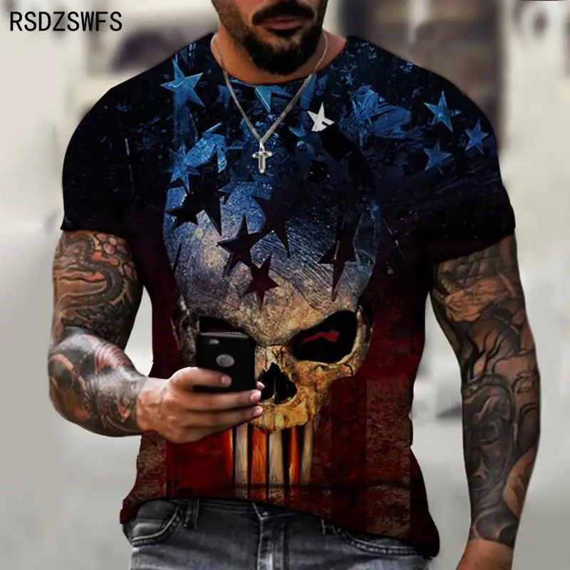 Футболка мужская с коротким рукавом и 3D-принтом черепа