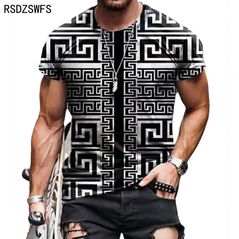 Футболка мужская оверсайз с Мозаичным принтом, модная тенниска с ко...