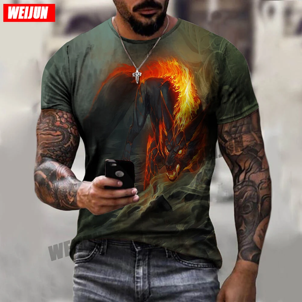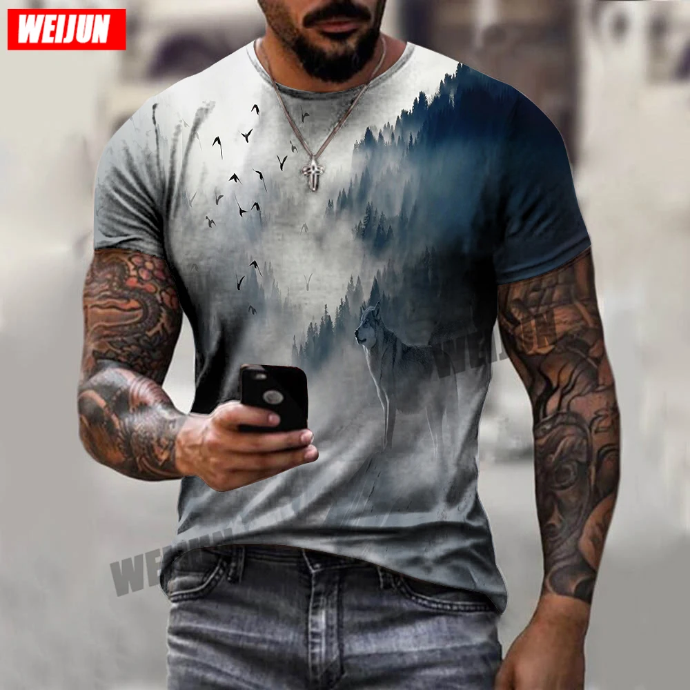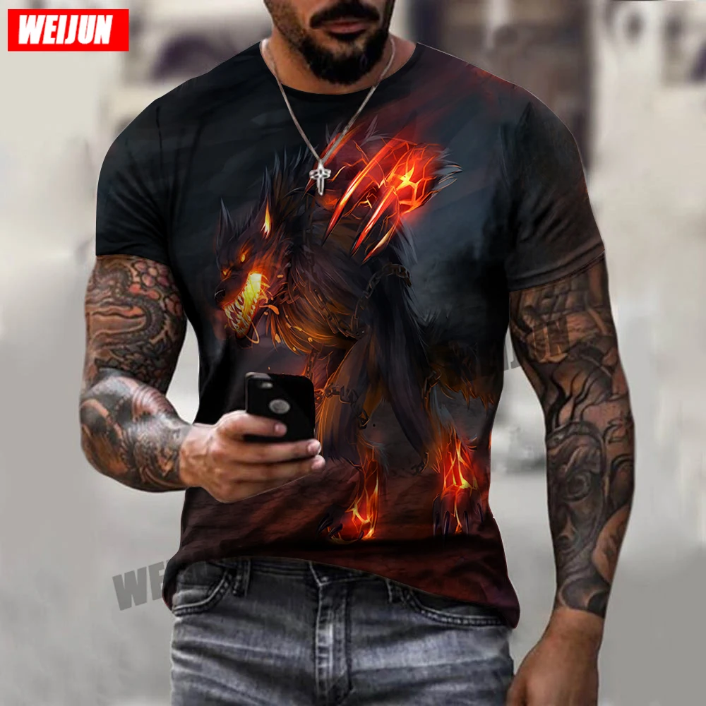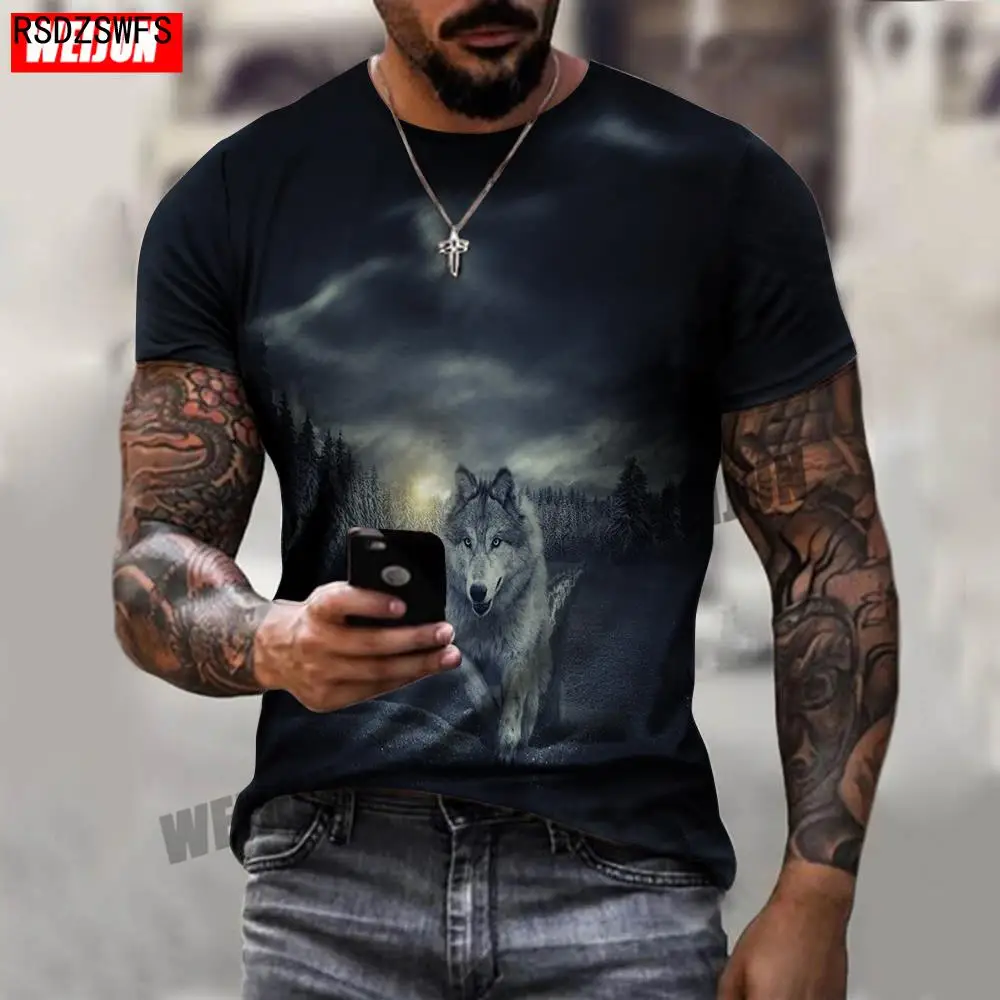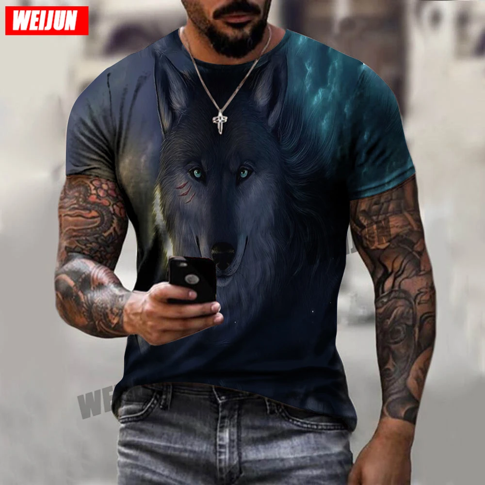 Крутая Летняя мужская футболка с 3D принтом, новинка 2021, Мужская Спортивная повседневная футболка с круглым вырезом и коротким рукавом с изображением волка, одежда с