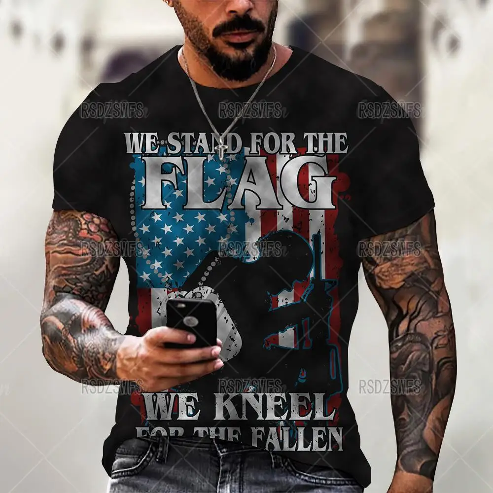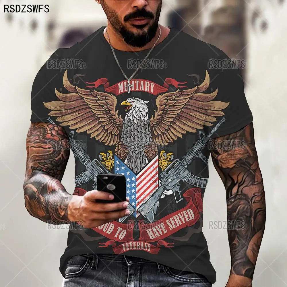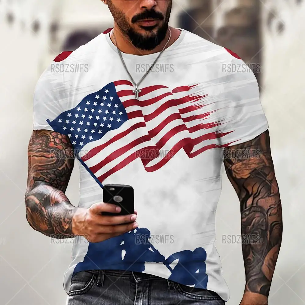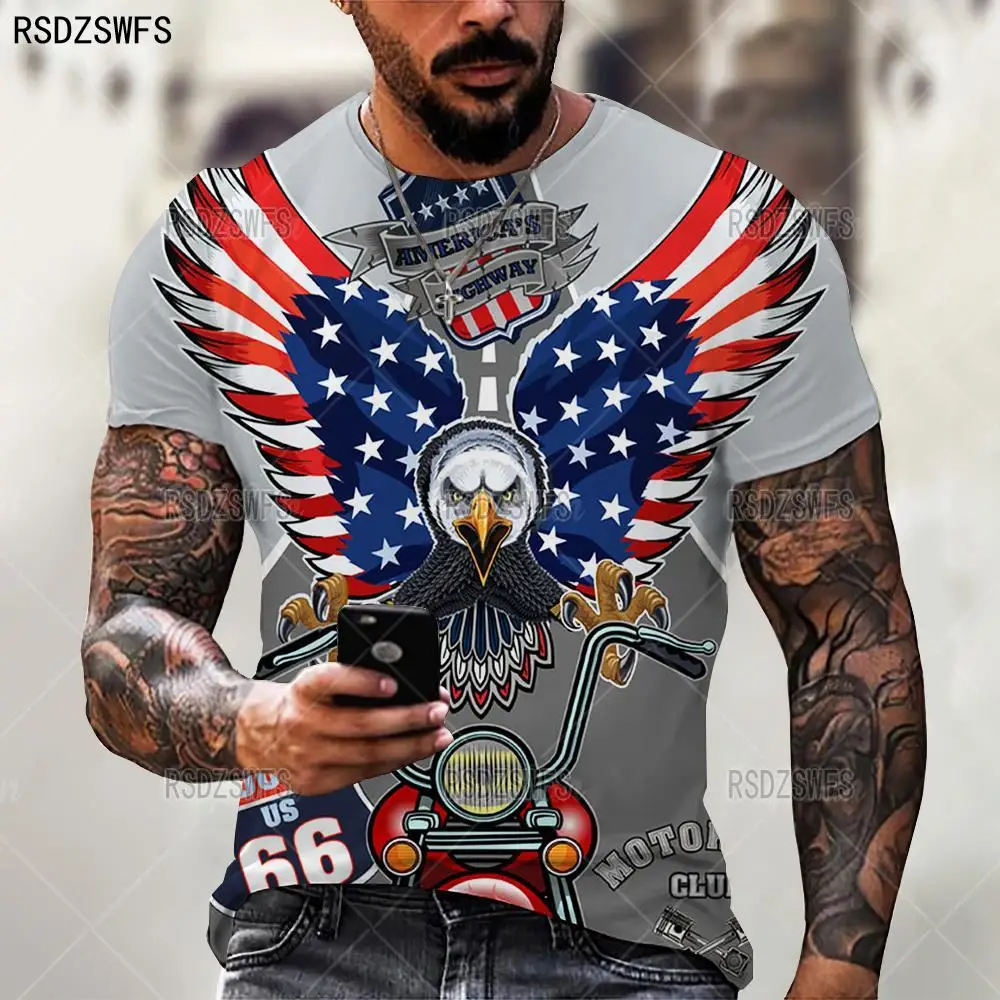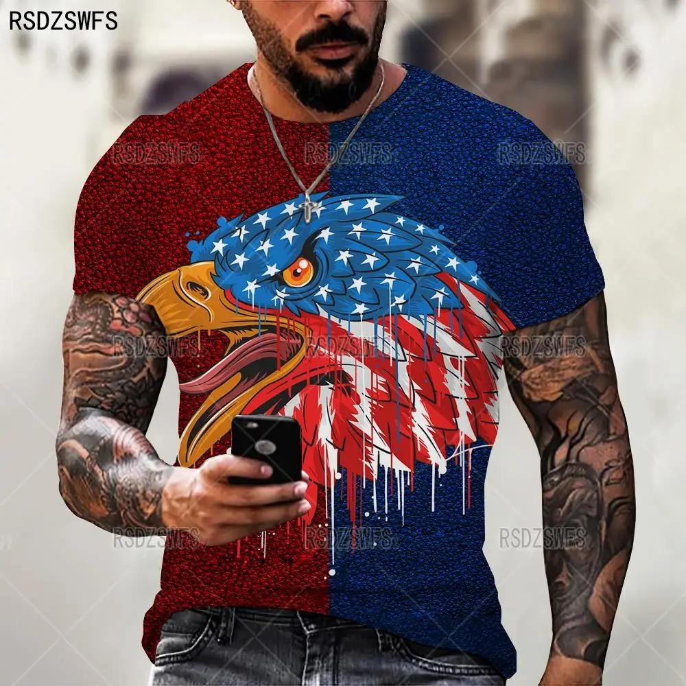Футболка мужская с принтом американского флага и орла, модная уличная одежда в стиле хип-хоп, свободная повседневная спортивная рубашка с круглым вырезом и коротким рукавом, топы, на лето