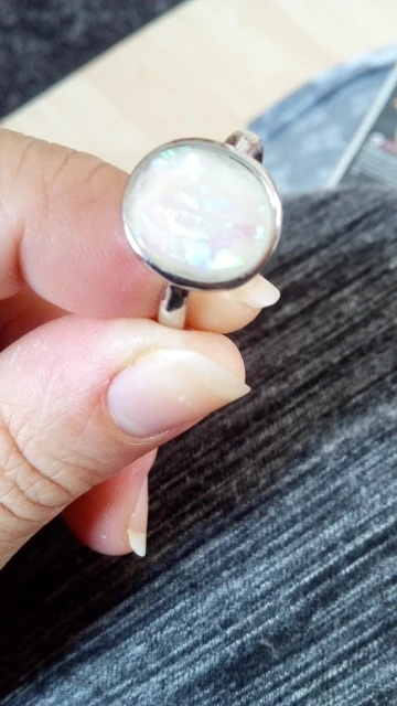 Потрясающее кольцо и очень быстрая доставка, я получил его в течение 10 дней с момента заказа, я из Франции. Камень не является лунным камнем, но по очень привлекательной цене, это не самое удобное кольцо, так как стороны грубо обрезаны и «острые», но размеры точные. Он также имеет красивую однотонную ленту.