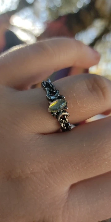 Ремешок толстый и рваный и немного болит при носке, камень слегка смещается, что немного разочаровывает. Но кольцо по-прежнему довольно милое.