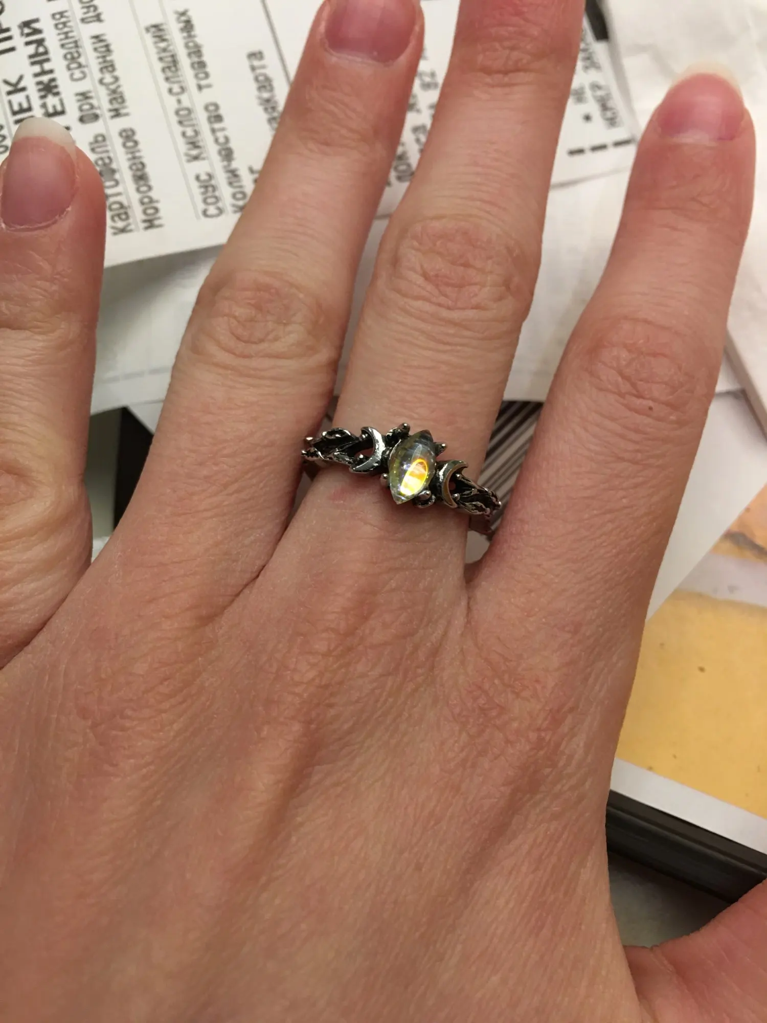 Кольцо красивое, но разочаровано тем, что камень не настоящий лунный камень!