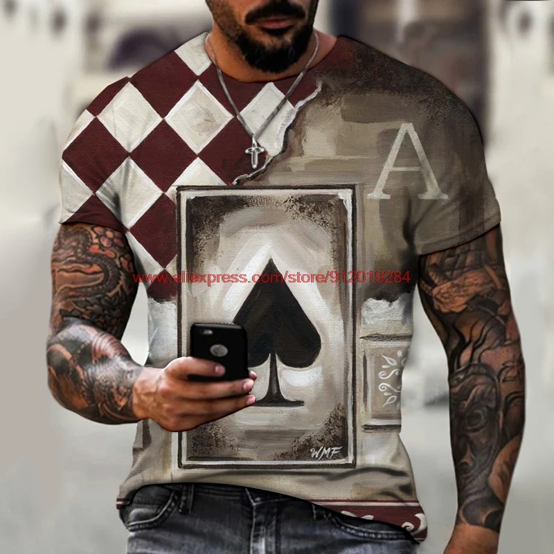 Забавная Мужская футболка в стиле хип-хоп с принтом карты покера и ...