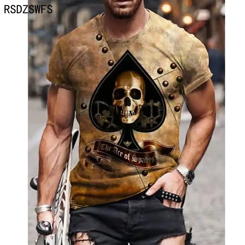 Ужасная Мужская футболка с принтом черепа пик покер Повседневная ле...