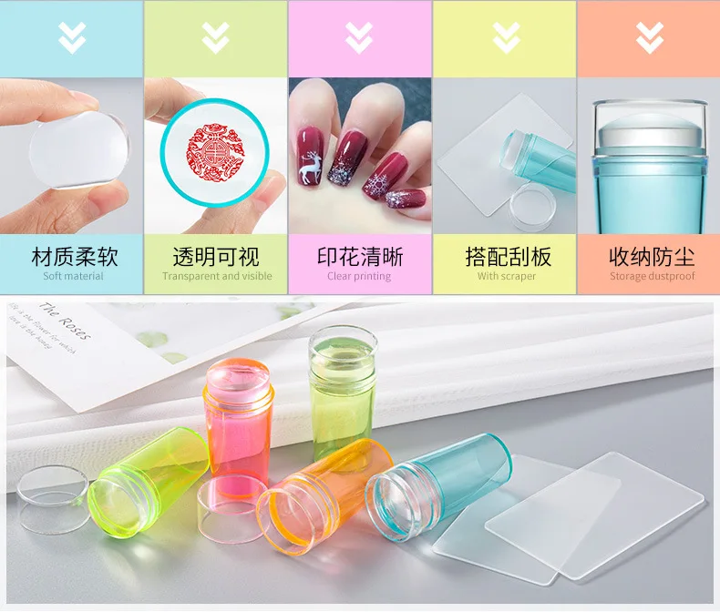 カバー付き 1 ピースネイルアートシールシリコン透明ハンドルフレンチトランスファーベルトスクレーパーDIYネイルデコラティブクリエイティビティモールドツール