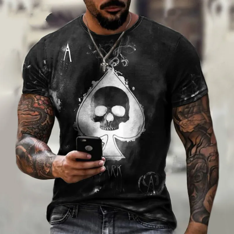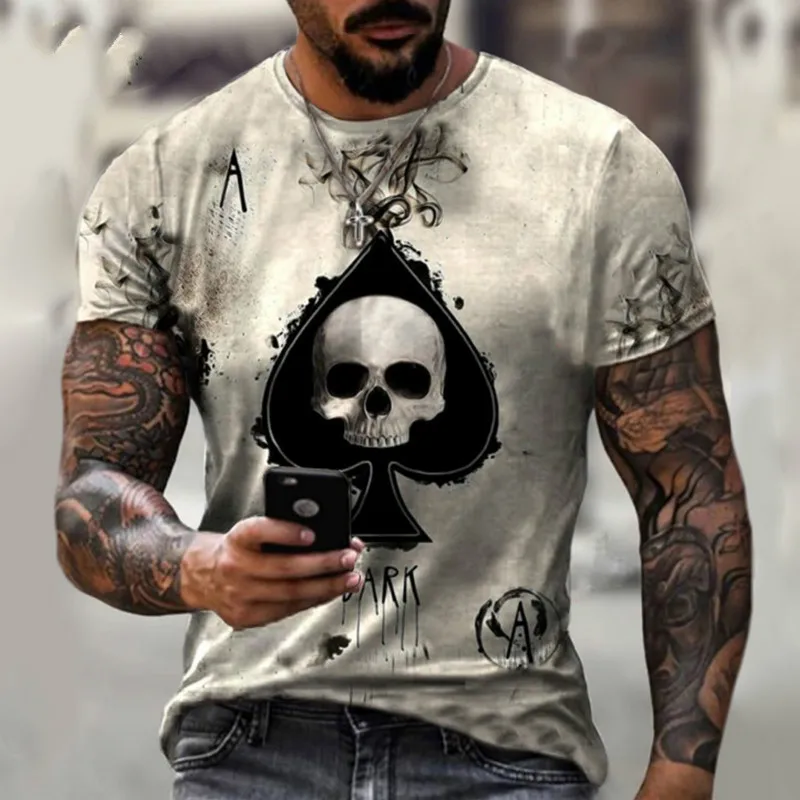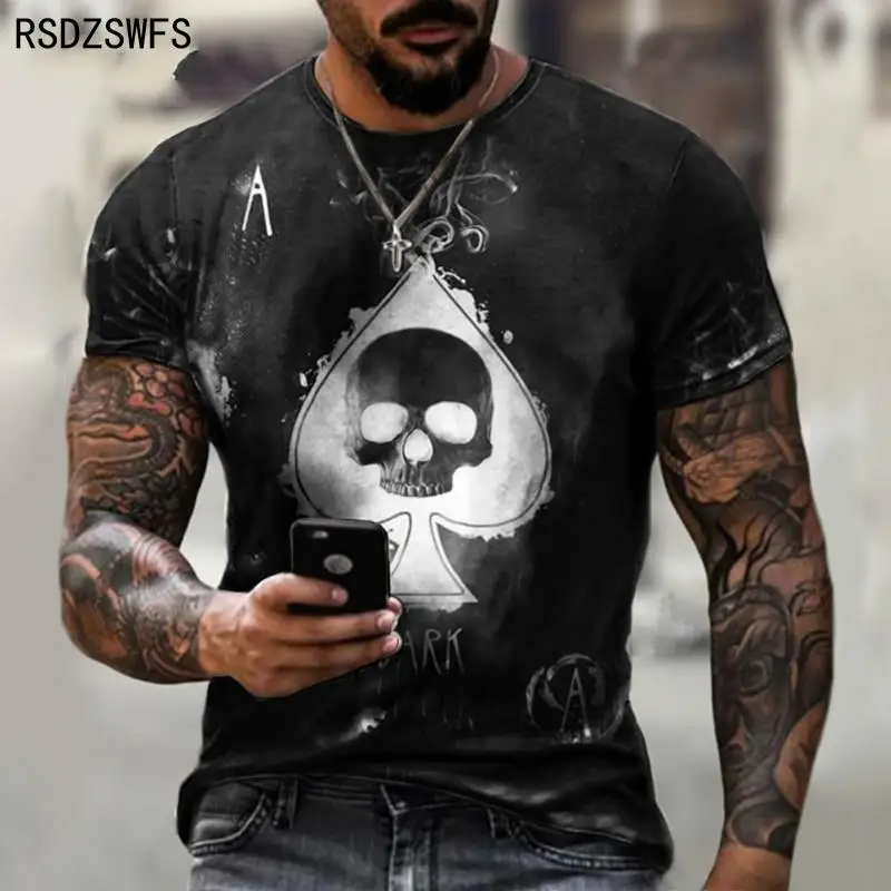 Футболка мужская с принтом игральных карт, свободная рубашка с 3D р...