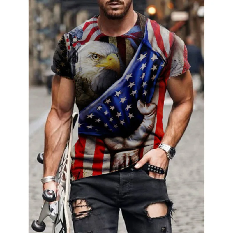 Летняя мужская футболка с американским флагом, Классический 3D прин...
