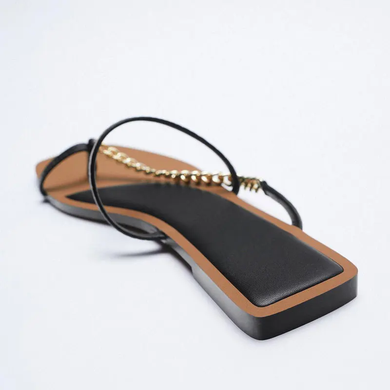 Женские туфли ZA, черные удобные туфли на плоской подошве с квадратной цепочкой, лето 2021