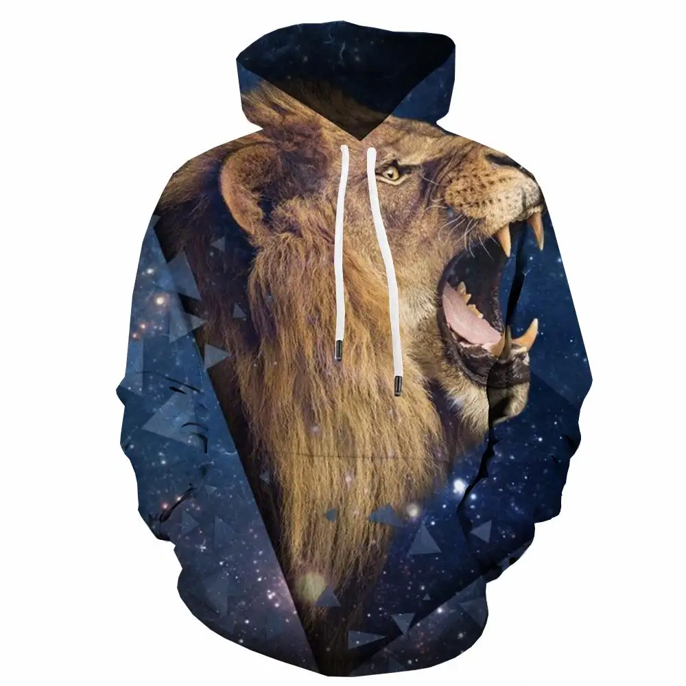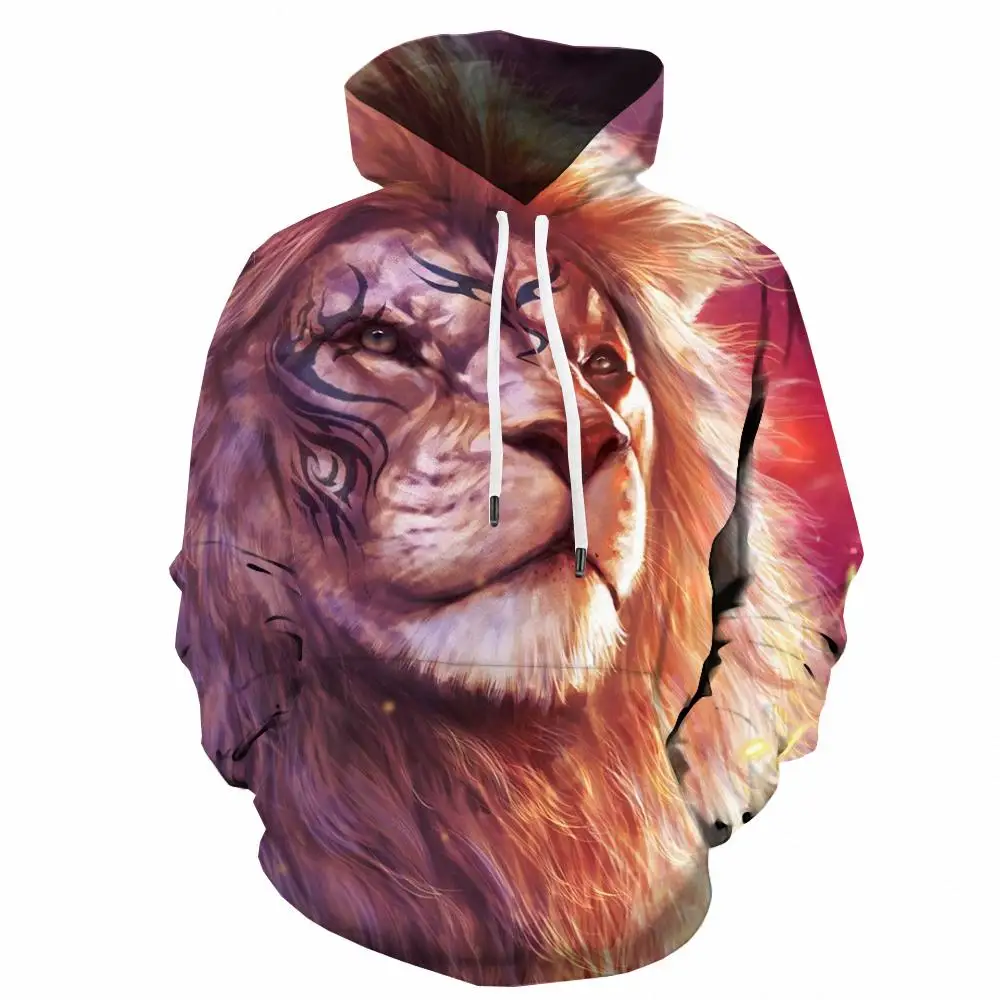 Толстовка мужская с 3D-принтом льва, свитшот с принтом молнии, черн...